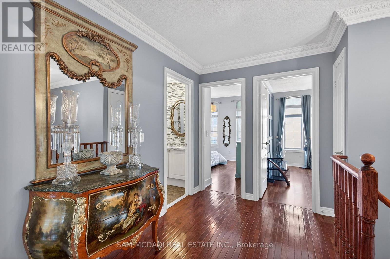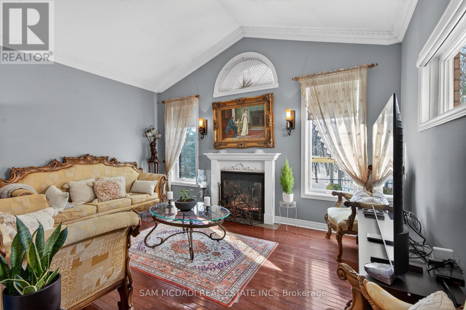 Welcome to one of the most private and beautifully maintained homes in Churchill Meadows. Set on a premium lot backing directly onto mature forested greenspace, this 4-bedroom, 4-bathdetached residence offers over 3000 sq ft of living space including a fully finished lower level designed for both comfort and entertaining. From the moment you step inside, the pride of ownership is unmistakable. Rich hardwood floors, crown moulding, pot lights and thoughtful upgrades throughout create a home that feels refined yet warm. The custom kitchen features granite counters, tile backsplash, stainless steel appliances and walkout access to a composite deck complete with a full retractable awning - the perfect space for summer dinners, weekend BBQs, and quiet evenings overlooking the treed backdrop. The cathedral-ceiling family room with gas fireplace and oversized picture windows fills the home with natural light while framing the private backyard views. Upstairs, four generous bedrooms offer space for a growing family, including a primary retreat with walk-in closet and 5-piece ensuite. The finished basement feels anything but below grade thanks to the luxurious finishes, extended windows, a 3-piece bath and ample space for recreation, fitness or media enjoyment. The professionally finished 2-car garage with tiled floor and paneled walls adds both function and polish - ideal for vehicles, storage, or a clean workshop setup. Located steps to parks, schools and transit in one of Mississauga's most sought-after family communities. This is one to see in person. (42193167)