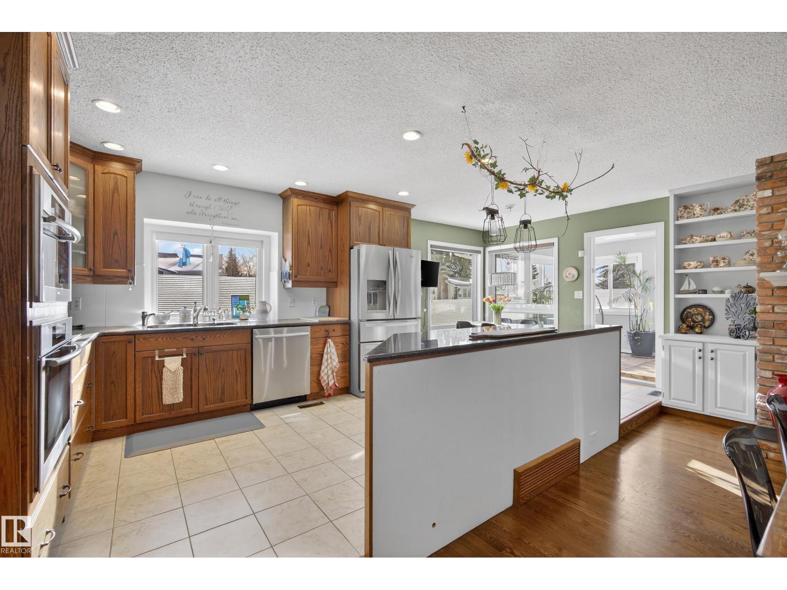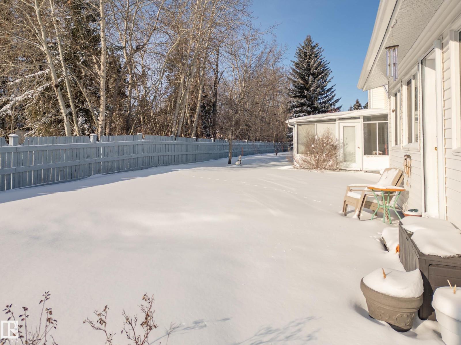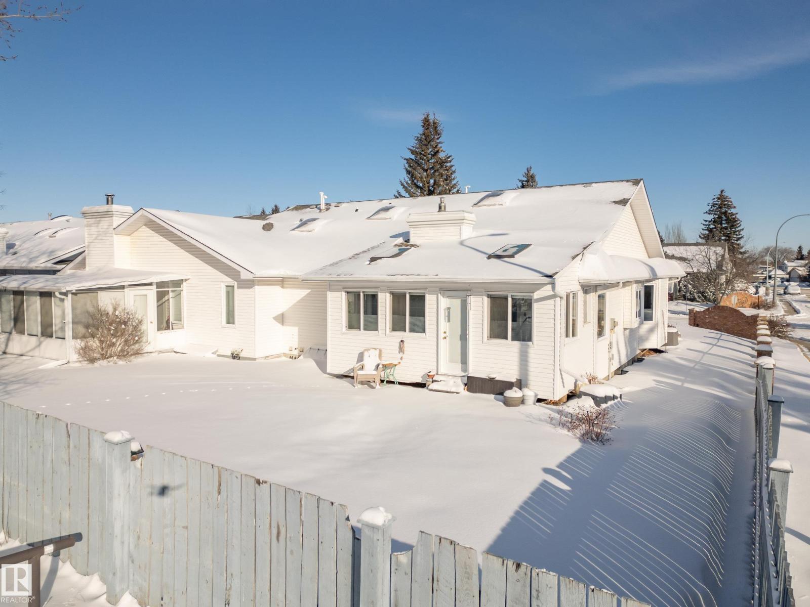 Welcome to this extensively upgraded half duplex in a sought-after adult living community, where pride of ownership shines throughout. Move-in ready and meticulously maintained! This home offers tons of natural light with skylights, open-concept living with a main floor den, spacious dining area, and sunken living room featuring a charming brick-facing gas fireplace. The stunning kitchen boasts stunning ceiling-height wood cabinetry and premium appliances, including a Miele induction cooktop, oven and stove, plus a Panasonic inverter microwave. A sunroom just off the kitchen provides the perfect space to relax with no rear neighbours! The spacious primary bedroom offers a tastefully renovated (2024) 5pc ensuite and walk in closet. An updated 4pc bath and main floor laundry complete this level. The fully finished basement features new vinyl plank flooring (2025), a large bedroom, updated 3pc bath, and abundant storage or room for hobbies! Welcome home! (33859484)
