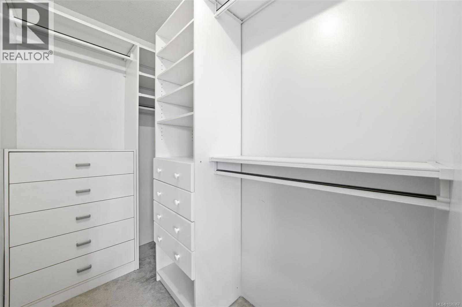 Walk in closet featuring light carpet and closet organizers