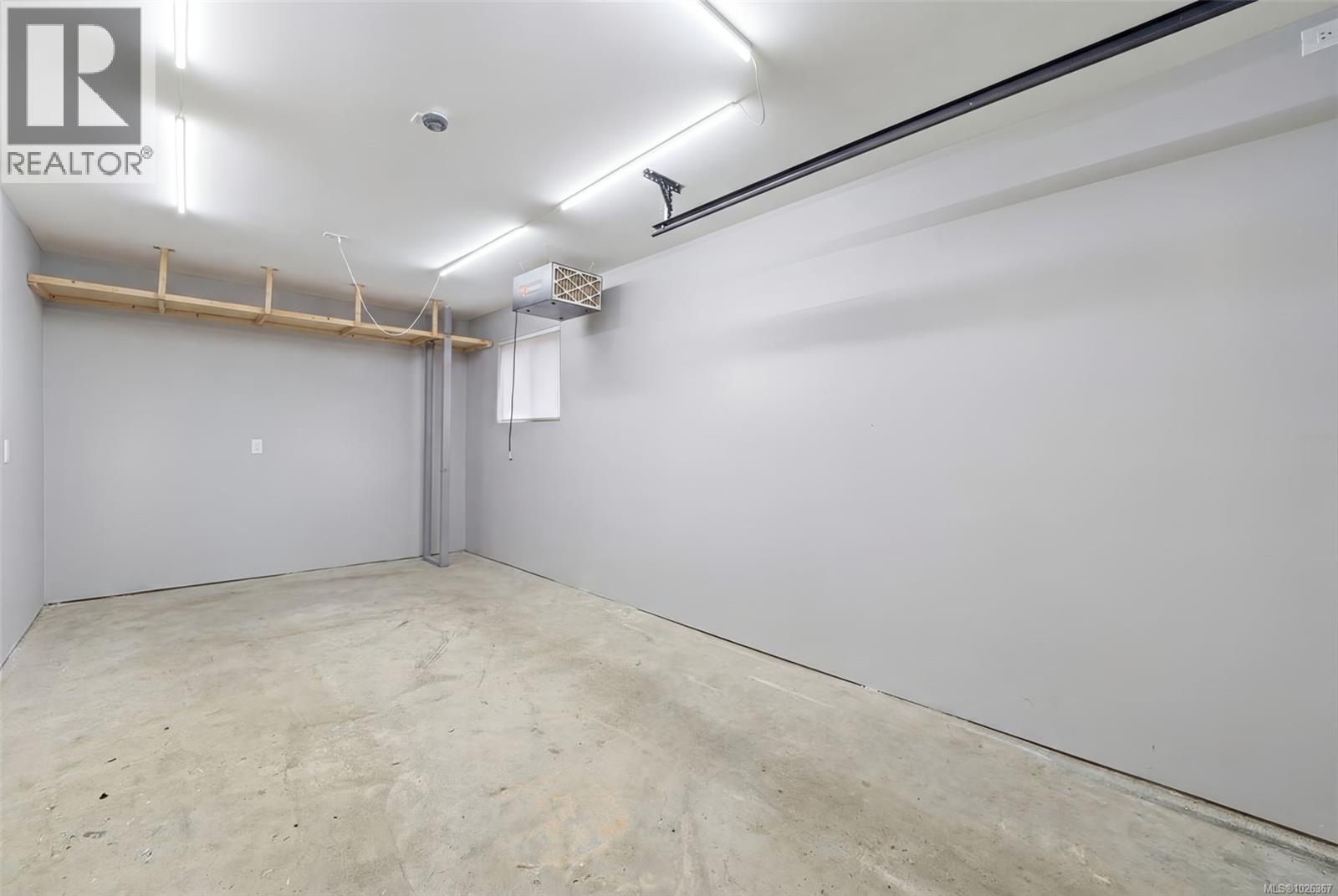 Garage featuring a heating unit (Owner's belongings virtually removed)