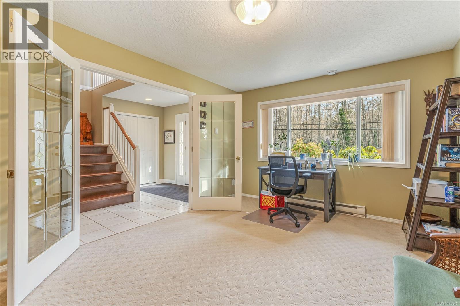 This South facing two story 3200 sq ft home in Mill Bay's idyllic Deer Park features several recent updates that allows you a seamless flow between indoor and outdoor living. Situated on a private fully treed.34 of an acre which includes east side RV parking along with a newly built workshop for the hobby enthusiast. Inside, you'll marvel at the grand foyer which leads to the traditional floorplan featuring two distinct levels, consisting of 4 bedrooms & 3 baths along with a front office/den, with the full in-law suite, complete with separate bath & bedroom all on the ground level. Upstairs enjoy the Cherry hardwood & the new natural gas fireplace in the quaint cozy living room offering separate dining and featuring the Chefs kitchen with adjoining family room including newer built-ins. You'll feel at home as the tour leads you to the fully covered deck & upscale private backyard oasis for family and friends to enjoy all year long with shopping, schools and recreation in close range. (30412198)
