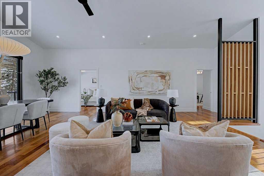 Welcome to this exceptional RIVERFRONT paradise! Set on one of the most expansive lots (over half an acre in size!) on the highly sought-after "Bow Crescent", this extraordinary property provides a unique lifestyle where you can fish, swim, and raft right from your backyard! The beautifully landscaped property has been carefully manicured to remove the brush and many trees that once impeded views of the water. The unique home has been tastefully upgraded over the years...with so many special features. Be swept into the open plan, with its welcoming feature wood wall...immediately introducing modern "style". Floors are adorned with walnut hardwood, adding warmth and elegance to the spaces. All windows, blinds and doors have been replaced. The oversized new patio doors provide views of the river from the main living area, plus access to the expansive "view" deck. The chef's kitchen showcases high-end stainless steel appliances (eg. 48" gas stove with 6 burners and a griddle), granite counters, plus a large island and an adjacent dining area. The master suite features views of the river, plus a BRAND NEW spa-like ensuite, with chic walnut cabinetry/quartz counters, a deep soaker tub and an oversized shower. Bedrooms 2 & 3 share a new 3 piece bathroom with stand-up shower. The bright walk-out basement also features stunning riverfront views, with easy access to the spectacular outdoor grounds that are fully irrigated - 7 zones. Bedrooms 4 & 5 are spacious and share a full 4 piece bathroom, plus an open recreation area with a cozy gas fireplace. New furnace, hot water tank and Central Air Conditioning. Roof is 8 years new. This rare oversized property on Bow Crescent (with over 60 feet of river frontage) offers such an opportunity to experience nature at its best and enjoy this gorgeous upgraded stylish home! (31672632)