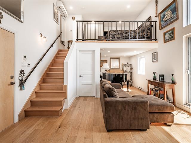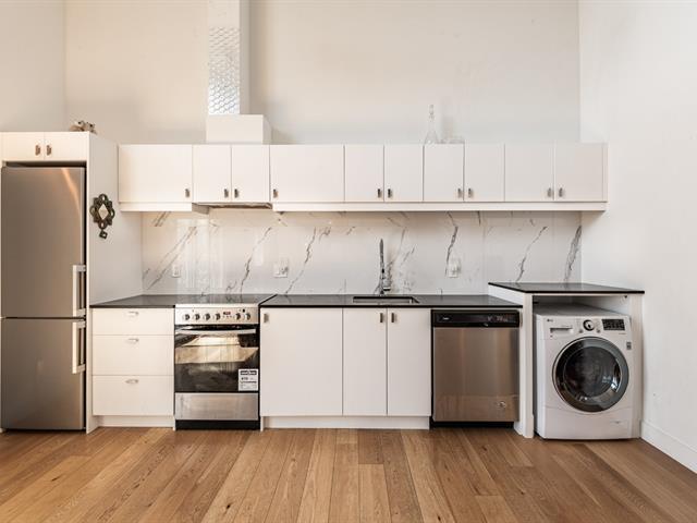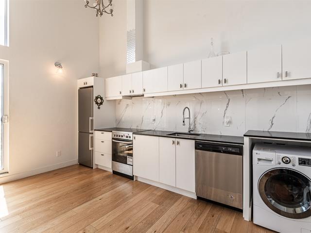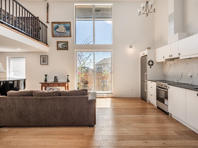 Discover this stunning loft featuring spectacular 15-foot ceilings, flooded with natural light. Its versatile mezzanine, seamless open-concept layout, and quality materials create a space that is both modern and inviting. Sleek kitchen with included stainless steel appliances, refined bathroom, private balcony, storage, and parking. Also enjoy a beautiful shared rooftop terrace. Located in the sought-after Sololoft project, not far from the Lachine Canal, bike paths, cafés, and restaurants. Close to Angrignon metro station, 15 minutes from downtown and 10 minutes from the airport. A turnkey urban lifestyle. (52598955)