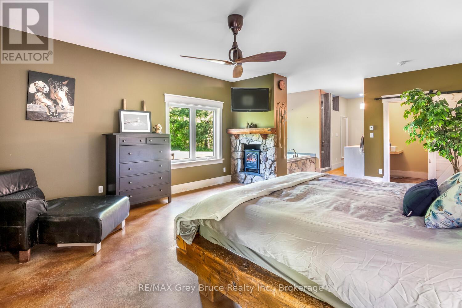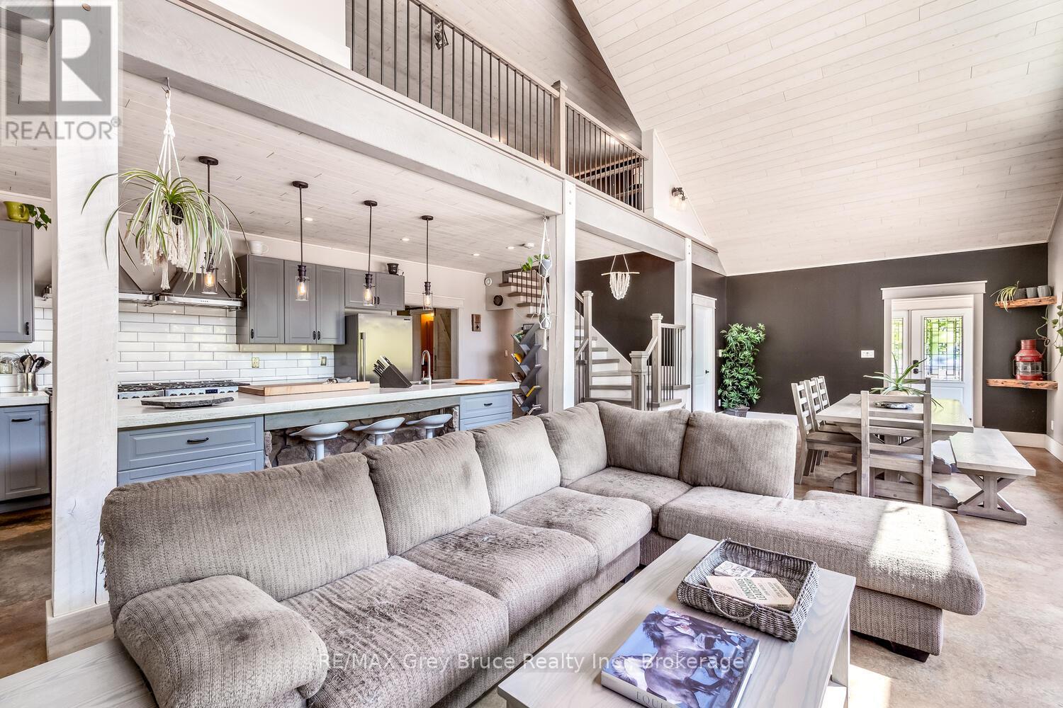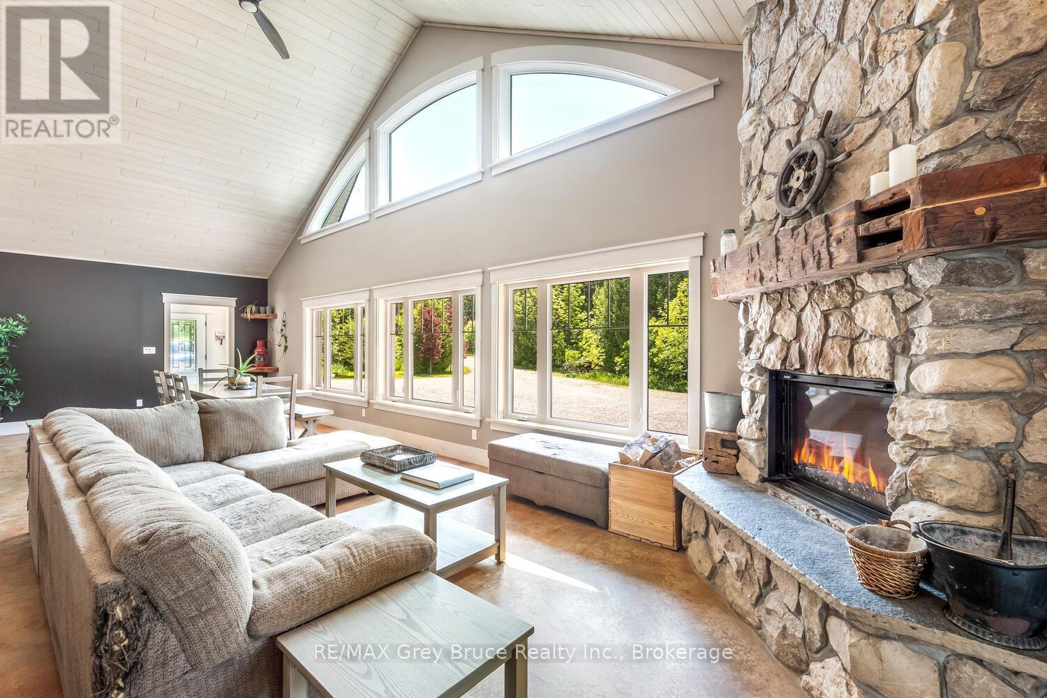 Elegance Meets Country Living on 24 Acres! Welcome to your private rural retreat just minutes from Tobermory. This exceptional country property offers the perfect balance of peaceful acreage living and convenient access to shops, amenities, recreation, and the stunning natural attractions of Northern Bruce Peninsula. Established in 2018, this custom 3-bedroom, 2.5-bath home offers approximately 2,760 sq. ft. of thoughtfully designed living space, ideal as a full-time residence, executive country home, or recreational getaway. The open-concept layout features soaring vaulted ceilings, expansive windows, and abundant natural light, creating a bright and inviting atmosphere for everyday living and entertaining. Designed with efficiency and comfort in mind, the home includes radiant in-floor heating and passive solar design for year-round energy savings. The chef-inspired kitchen is a standout feature with a large island, dual propane ranges, farmhouse sink, and custom concrete countertops - perfect for hosting family and friends. The spacious primary suite serves as a private sanctuary, complete with a spa-like ensuite featuring a soaker tub, walk-in shower, double vanity, separate water closet, and direct access to a covered deck with hot tub. A generous walk-in closet adds functionality and style. The upper-level loft provides flexible space for a home office, fitness area, studio, or additional living area. Outdoors, enjoy the freedom of 24 acres of land, ideal for hobby farming, gardening, or simply embracing nature. A fully heated, attached double garage offers year-round parking, workshop potential, or storage for recreational equipment. With direct access to snowmobile trails plus nearby hiking trails and water access, this property supports an active four-season lifestyle. An outstanding opportunity to own a modern rural home with acreage in a sought-after location - perfect for buyers seeking privacy, recreation, and investment in Bruce Peninsula real estate. (42195801)