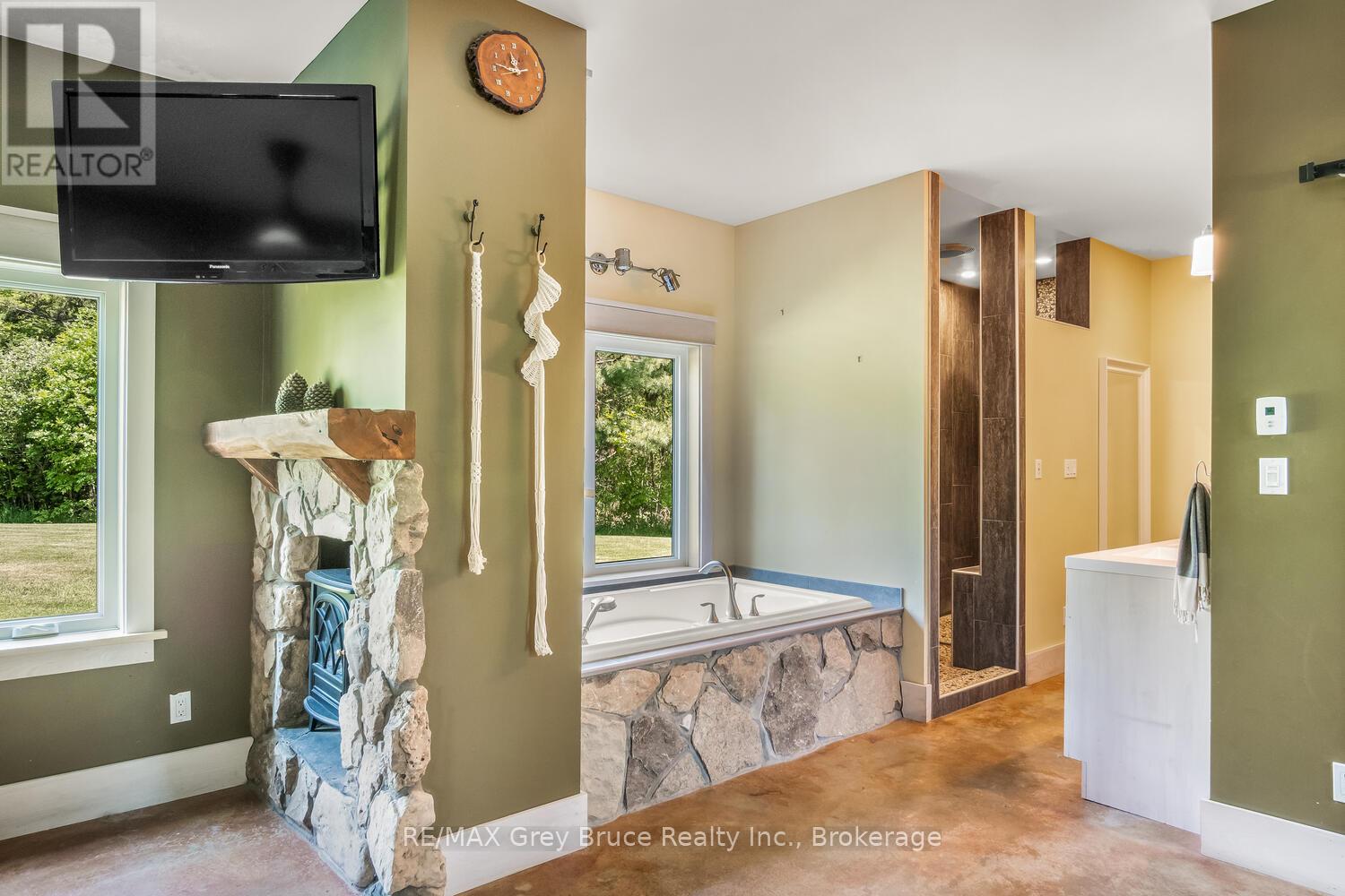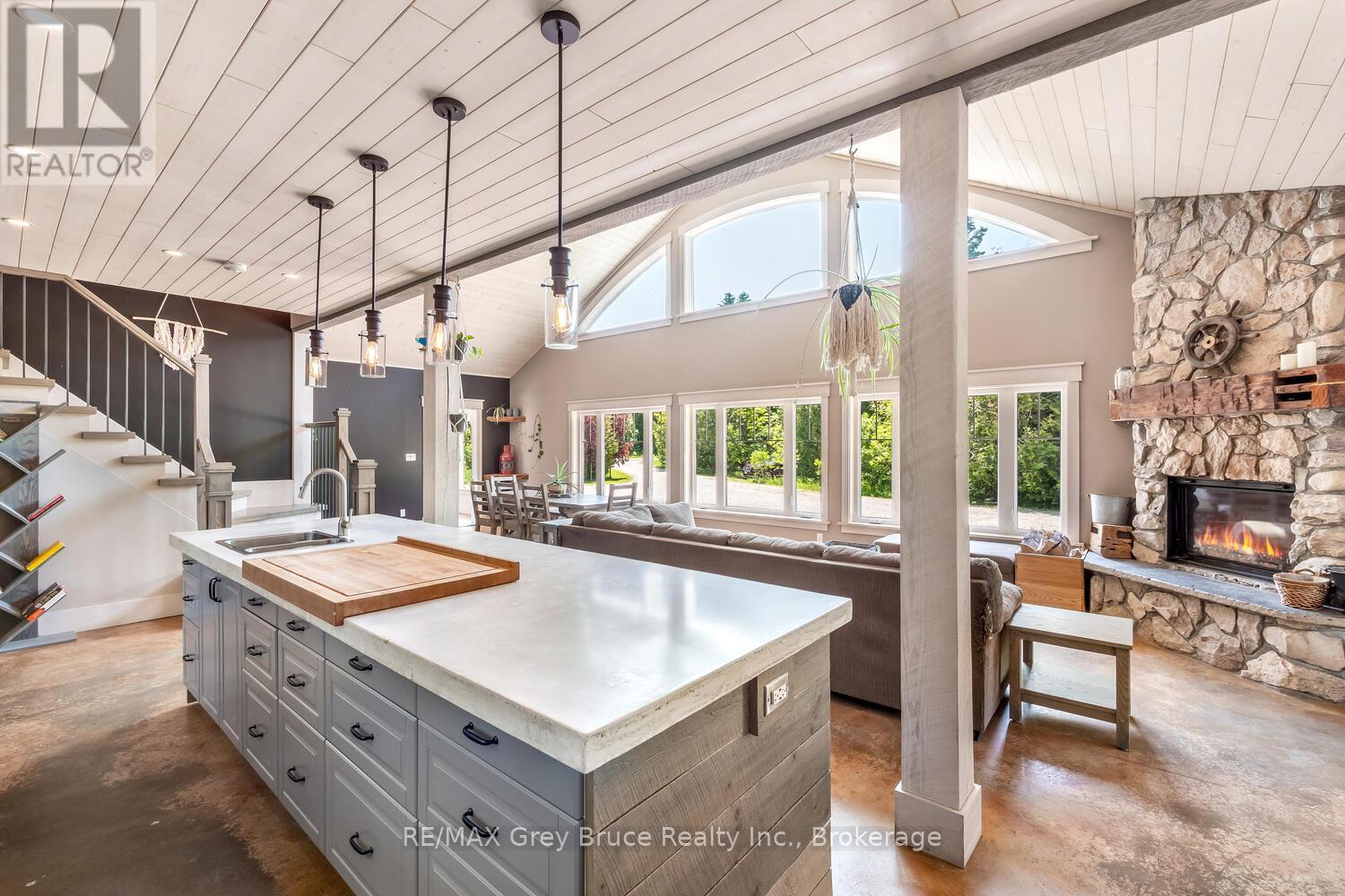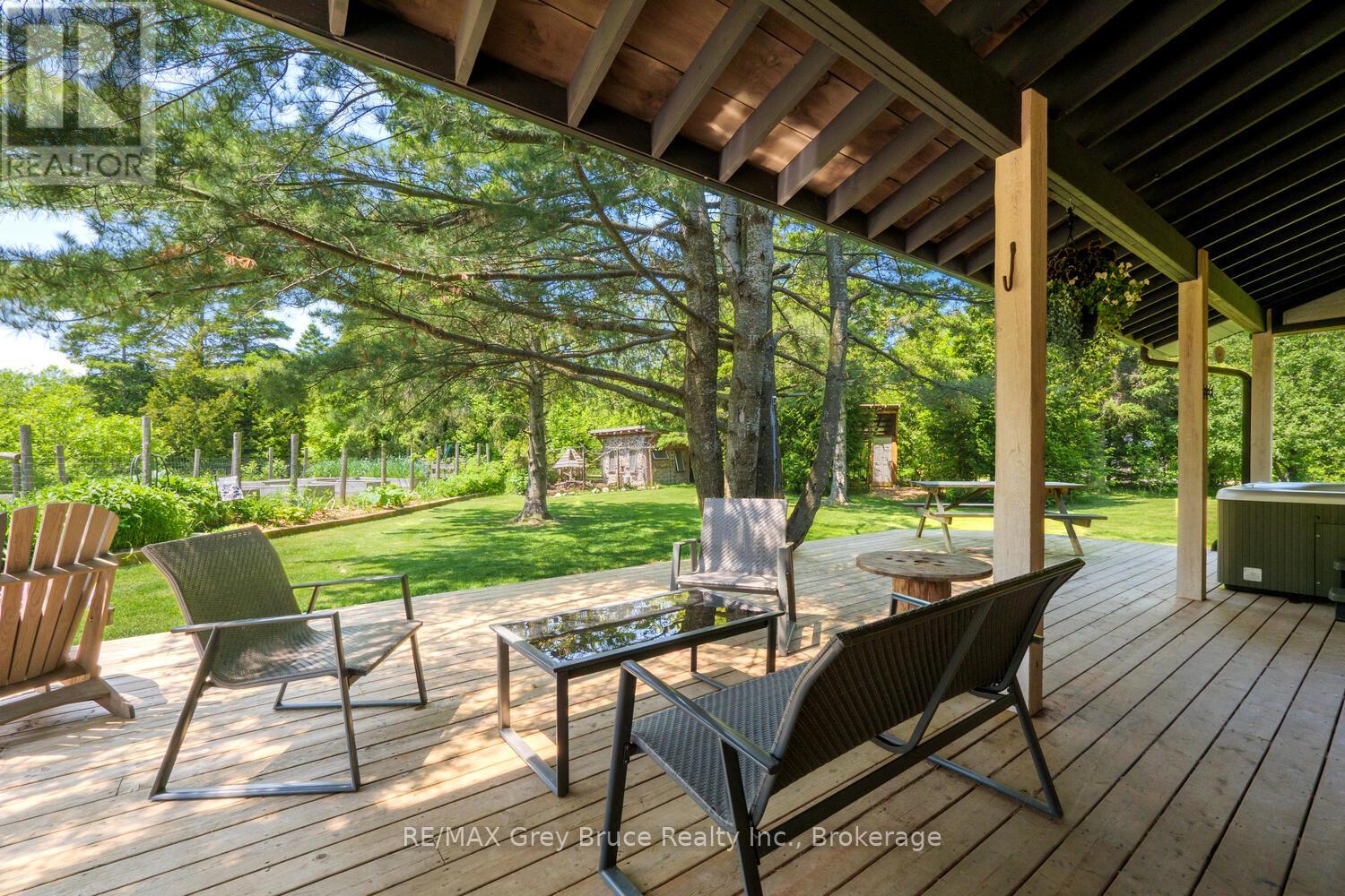 Elegance Meets Country Living on 24 Acres! Welcome to your private rural retreat just minutes from Tobermory. This exceptional country property offers the perfect balance of peaceful acreage living and convenient access to shops, amenities, recreation, and the stunning natural attractions of Northern Bruce Peninsula. Established in 2018, this custom 3-bedroom, 2.5-bath home offers approximately 2,760 sq. ft. of thoughtfully designed living space, ideal as a full-time residence, executive country home, or recreational getaway. The open-concept layout features soaring vaulted ceilings, expansive windows, and abundant natural light, creating a bright and inviting atmosphere for everyday living and entertaining. Designed with efficiency and comfort in mind, the home includes radiant in-floor heating and passive solar design for year-round energy savings. The chef-inspired kitchen is a standout feature with a large island, dual propane ranges, farmhouse sink, and custom concrete countertops - perfect for hosting family and friends. The spacious primary suite serves as a private sanctuary, complete with a spa-like ensuite featuring a soaker tub, walk-in shower, double vanity, separate water closet, and direct access to a covered deck with hot tub. A generous walk-in closet adds functionality and style. The upper-level loft provides flexible space for a home office, fitness area, studio, or additional living area. Outdoors, enjoy the freedom of 24 acres of land, ideal for hobby farming, gardening, or simply embracing nature. A fully heated, attached double garage offers year-round parking, workshop potential, or storage for recreational equipment. With direct access to snowmobile trails plus nearby hiking trails and water access, this property supports an active four-season lifestyle. An outstanding opportunity to own a modern rural home with acreage in a sought-after location - perfect for buyers seeking privacy, recreation, and investment in Bruce Peninsula real estate. (42195801)