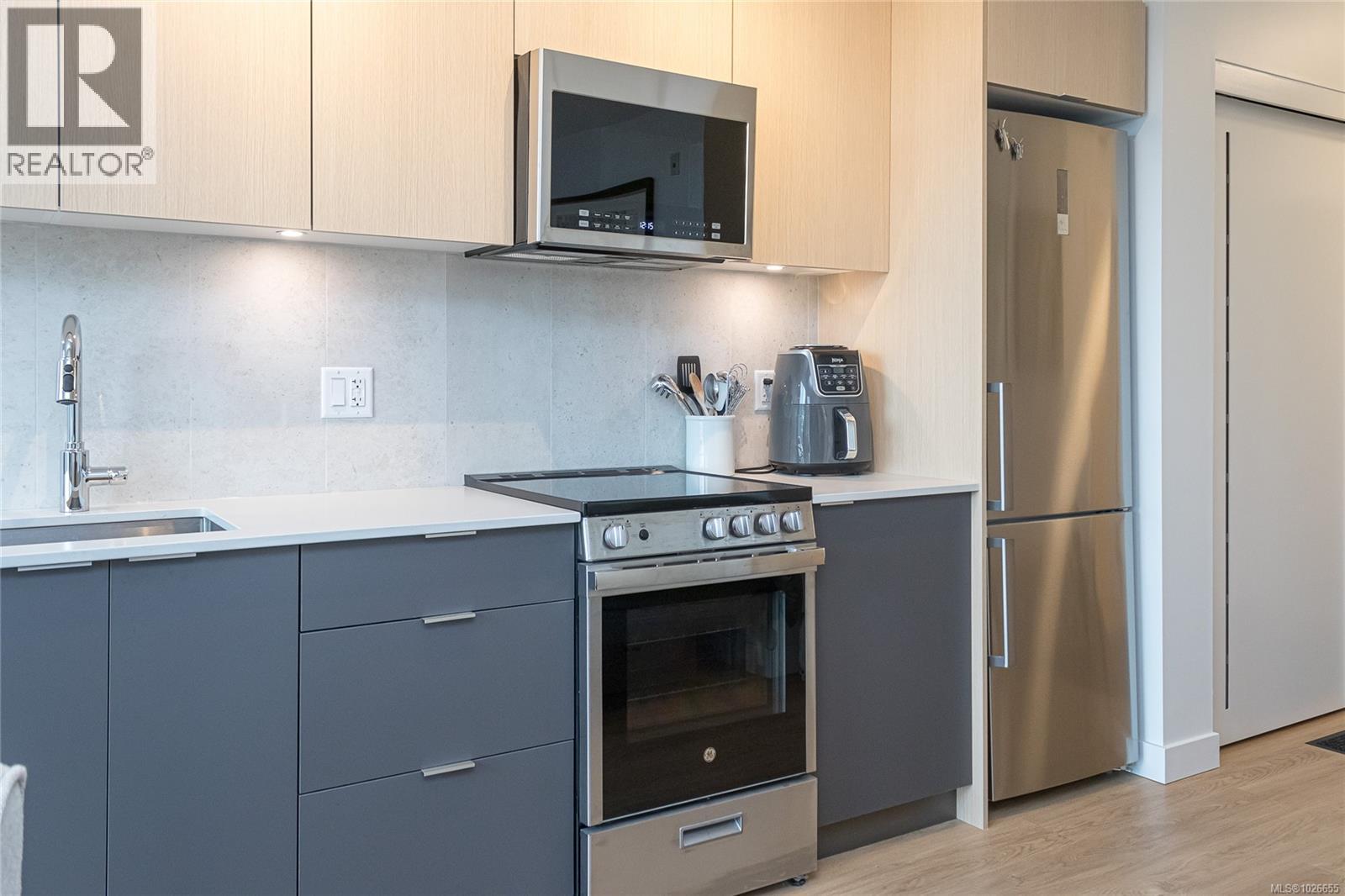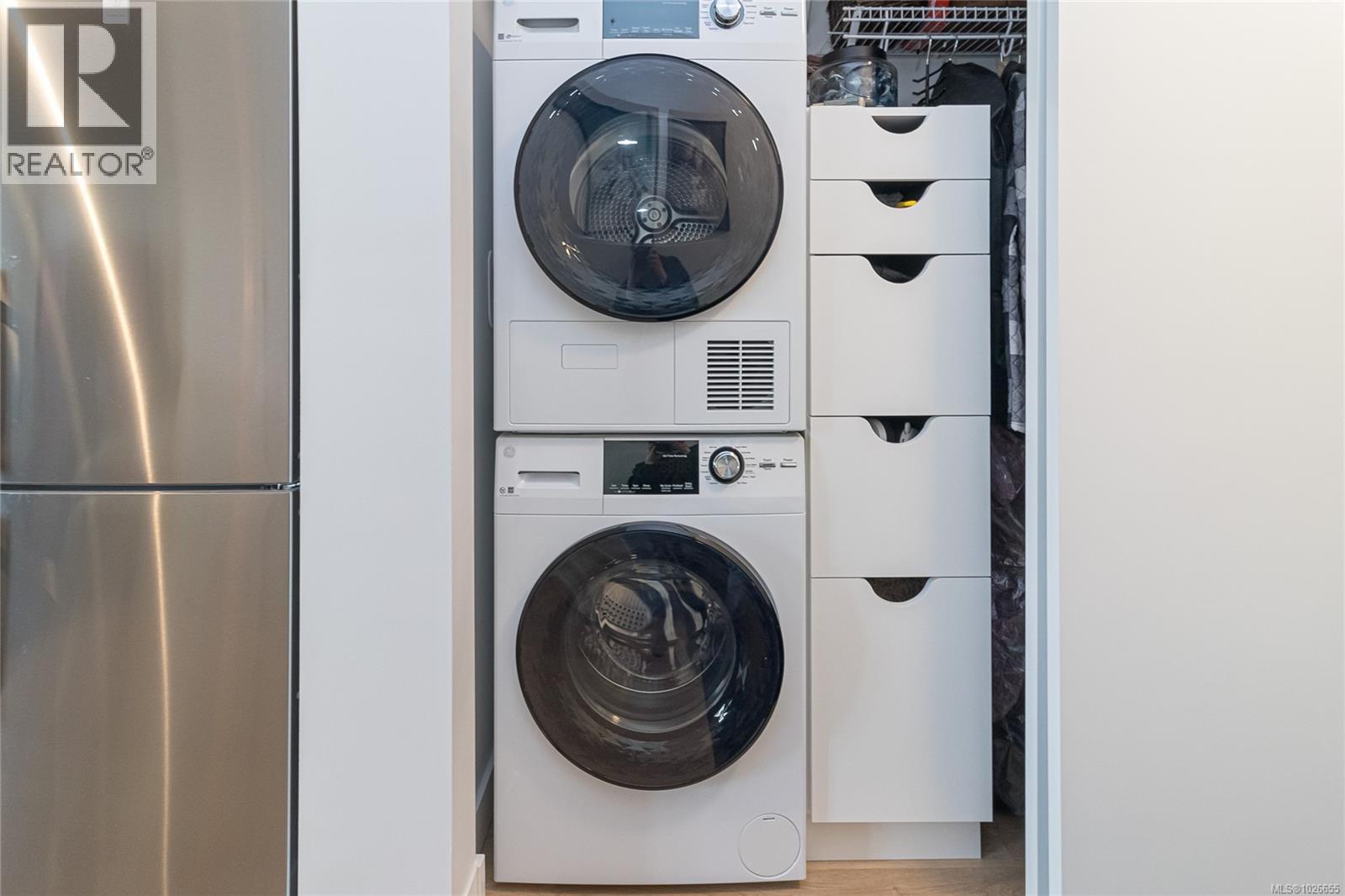 This like-new, top-floor modern unit is filled with natural light, over-height ceilings and a smart, efficient layout that creates a comfortable living space. Luxury vinyl plank flooring offering a seamless look and easy care. The stylish kitchen boasts ample cabinetry, while the in-suite laundry includes extra storage. A spacious 4pc bathroom, excellent lighting, and white blackout window coverings. Enjoy access to a car & e-bike-share program, plus thoughtful amenities. Dog lovers, there is a on-site pet run and wash station. There’s also an outdoor children’s play area and a meeting/media room. Ideally located on Upper Johnson, you’re within easy walking distance to the Fernwood and Rockland neighborhood's, close to downtown Victoria’s vibrant events and attractions, and just south of beautiful Beacon Hill Park. With two excellent grocery stores nearby, you can comfortably leave the car at home. Presented in show-suite condition, this home is move-in ready and sure to impress. (30413392)