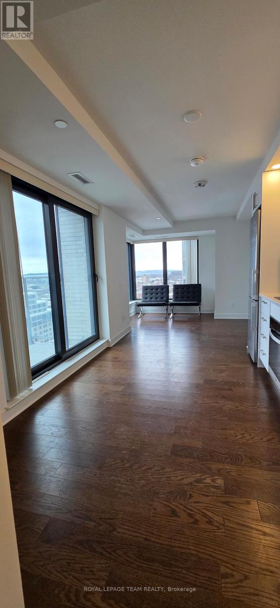 Experience elevated urban living at Claridge Royale in this stunning, brand-new studio suite designed for comfort and sophistication. This bright, open-concept corner unit showcases expansive windows, rich oak hardwood flooring, in-unit laundry, and a private balcony with beautiful views-perfect for enjoying summer evenings and Canada Day fireworks. The sleek, modern kitchen is equipped with premium cabinetry, elegant quartz countertops, and stainless steel appliances, offering both style and functionality. Enjoy unmatched convenience with direct indoor access to a Metro grocery store, while residents benefit from exceptional amenities including a resort-style indoor pool, fully equipped fitness center, rooftop terrace, theatre lounge, and stylish party and meeting spaces. A private storage locker is included, and parking can be arranged for added flexibility. Ideally located just moments from the University of Ottawa, ByWard Market, Rideau Centre, and LRT access, this prime address offers the perfect blend of luxury and convenience. 24-hour lobby security. Rental application required including proof of income and credit report. Quick possession available-an exceptional opportunity not to be missed. (42196617)