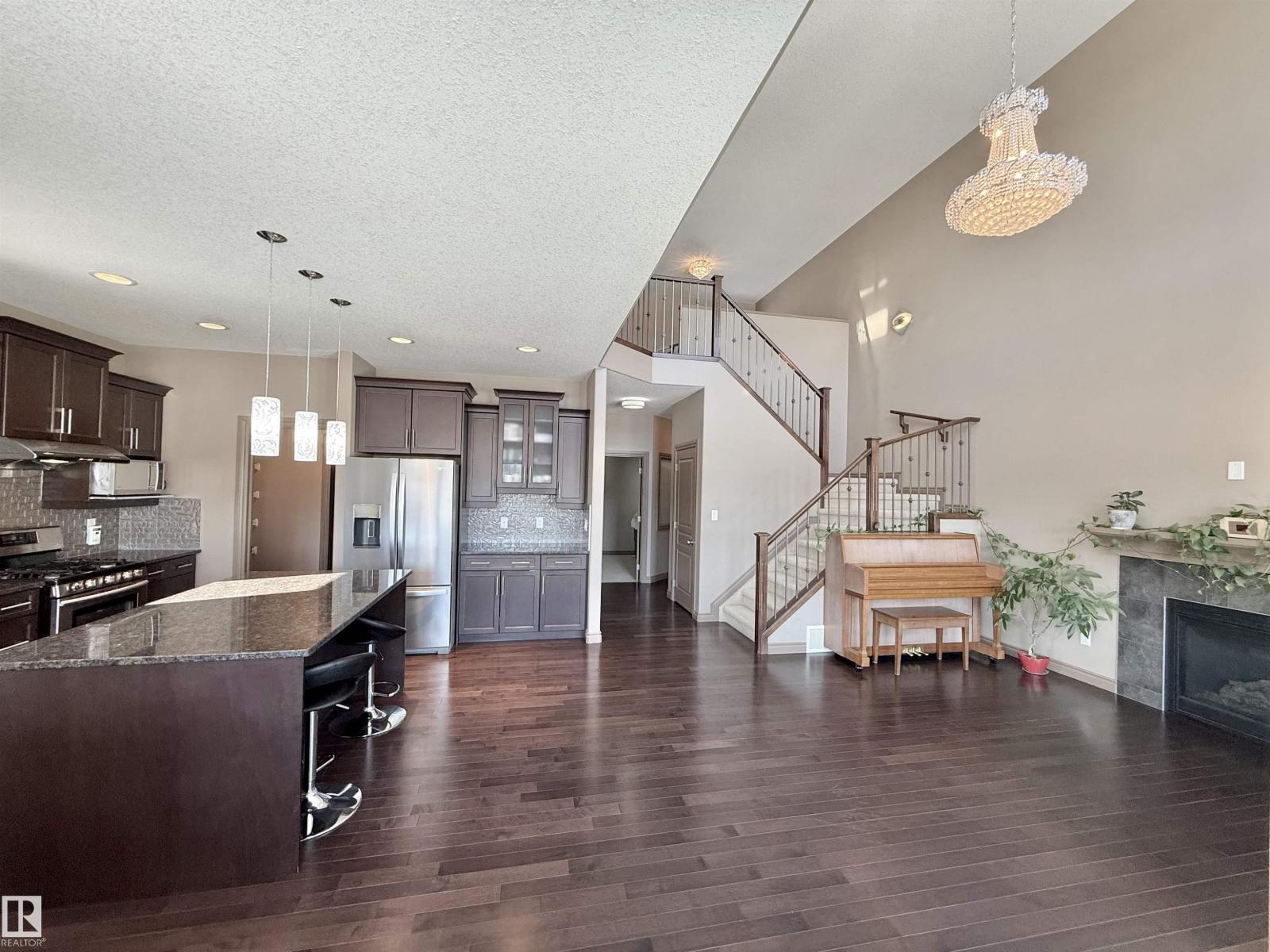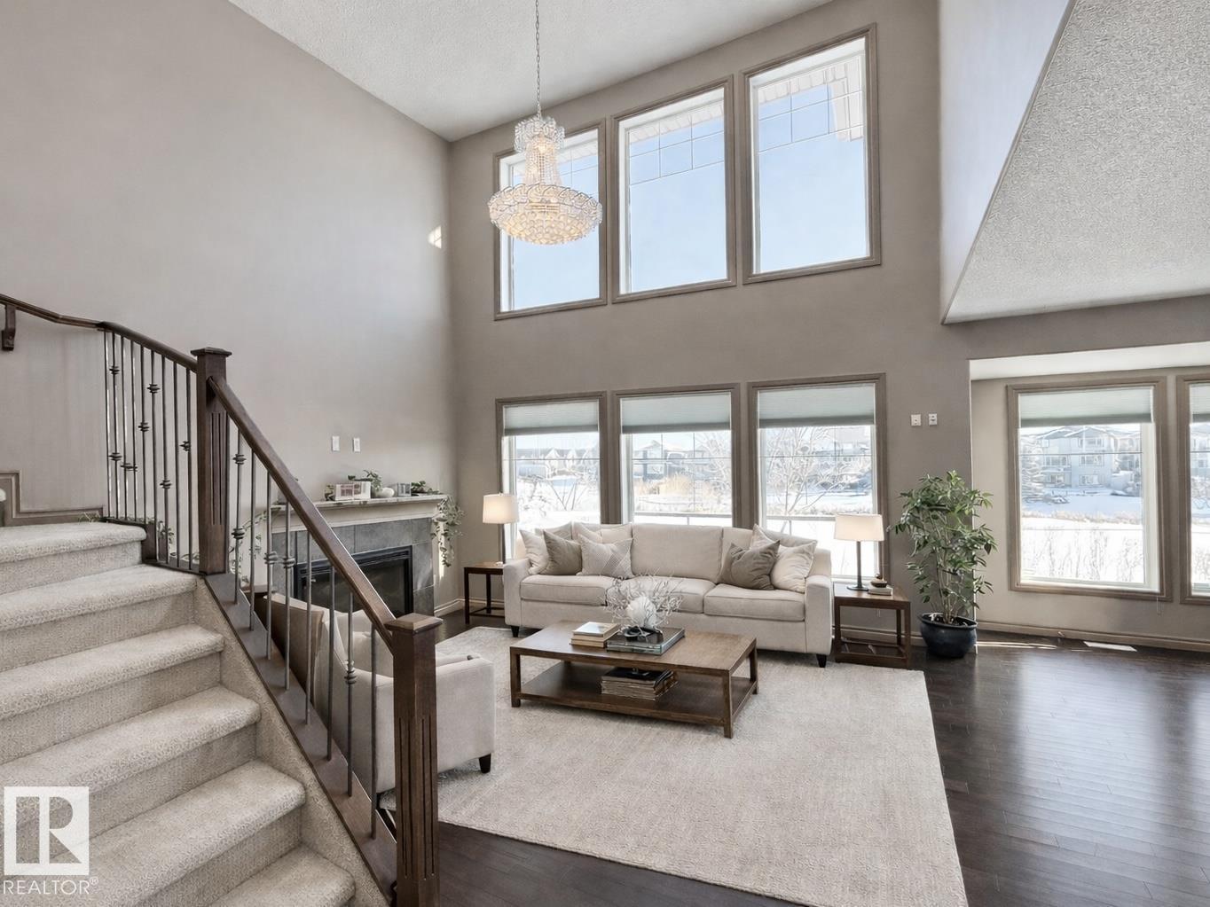 Welcome to this stunning lake-view, walkout basement two-storey home in prestigious Windermere. Built in 2013, this home offers over 3,300 sq.ft. of total living space, including 2,330 sq.ft. above grade plus a fully finished basement. The main floor features 9-ft ceilings and a dramatic 19-ft open-to-above living room with a full wall of windows, filling the space with natural light. Hardwood flooring complements the open-concept kitchen with stainless steel appliances, granite countertops, ample cabinetry, and a walkthrough pantry. A functional mudroom with laundry and sink connects to an oversized attached double garage. This level also includes a bedroom/office and a 2-piece bath. Upstairs offers a bonus room, a spacious primary suite with lake views, a 5-piece ensuite and walk-in closet, plus two additional bedrooms and a full bath. The bright walkout basement features a large family room, two bedrooms, and a full bath. Close to schools, shopping, and Henday. Rare opportunity! (33861362)