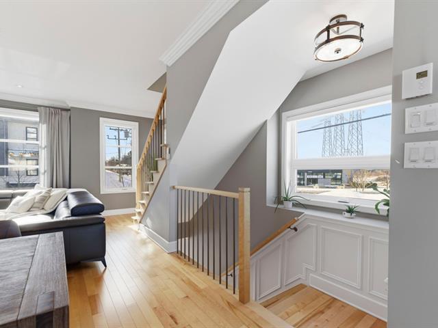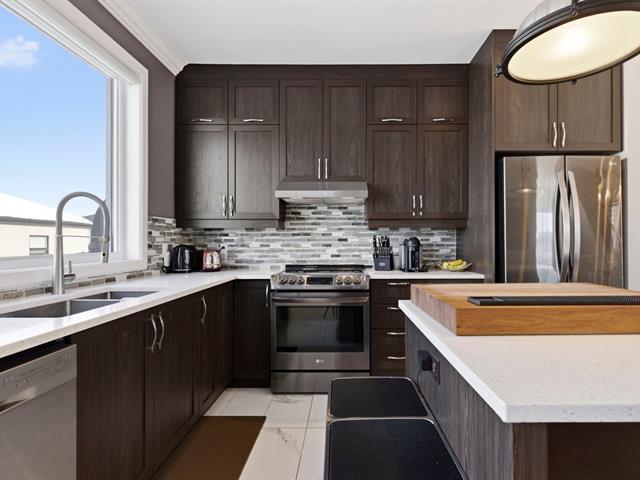 Magnificent and rare townhouse available for rent including appliances. Corner unit with an oversized double garage and a cute backyard with a shed. 2 bedrooms with walk-ins, 2 powder rooms and 1 bathroom, outdoor parking. Quartz counter tops, gas fireplace and ceramic shower ! See addendum for the rental conditions. (49999265)