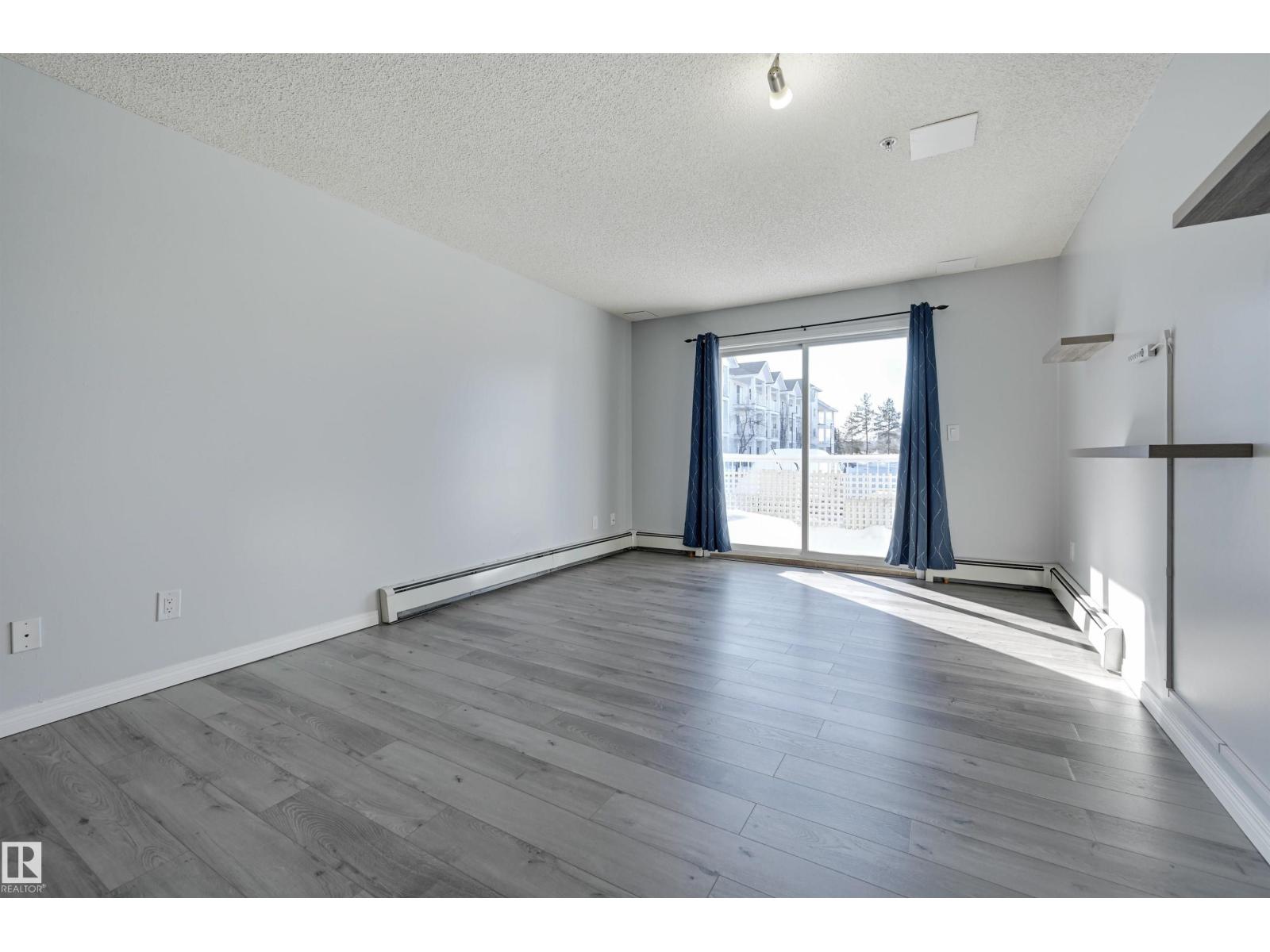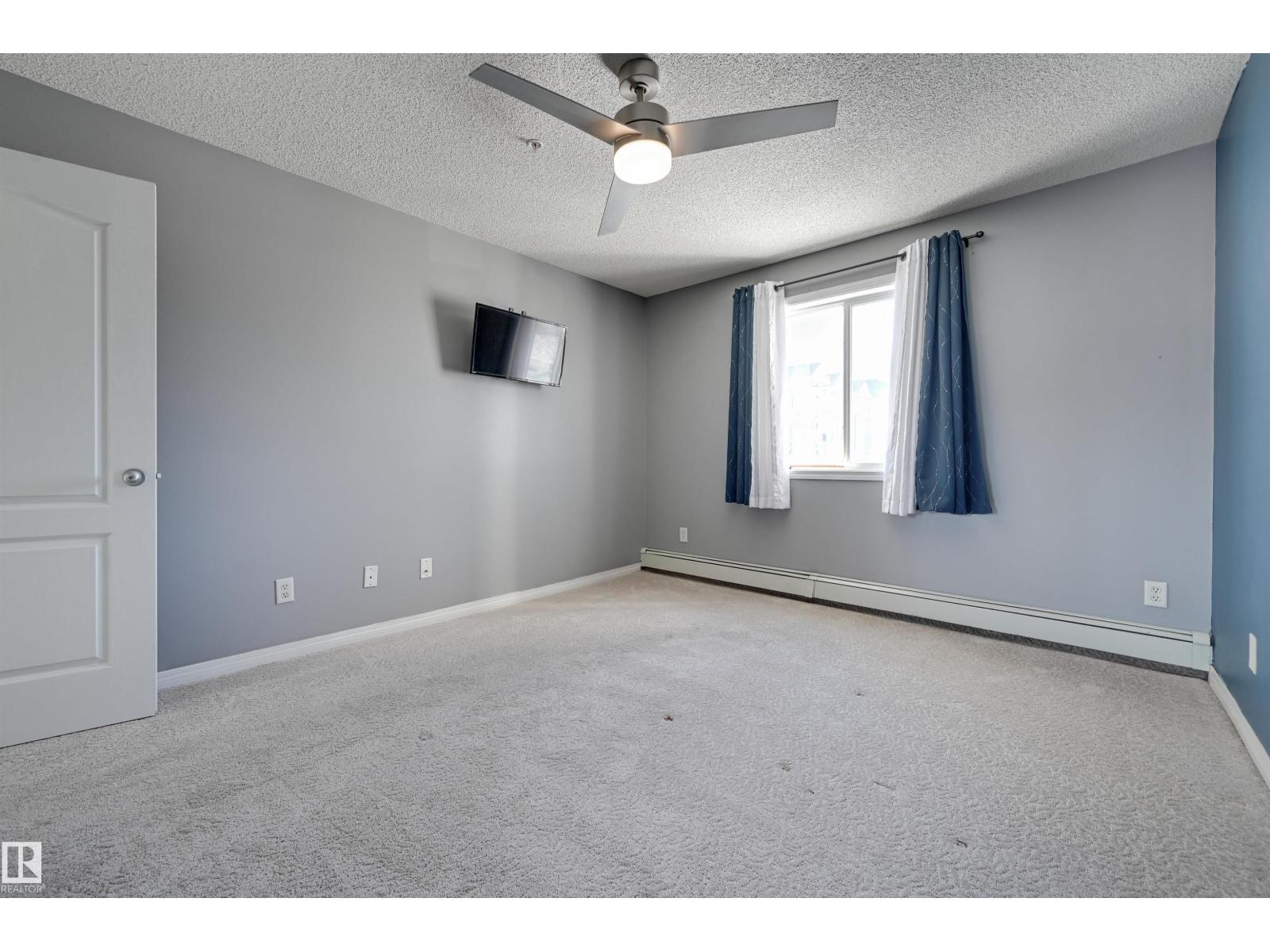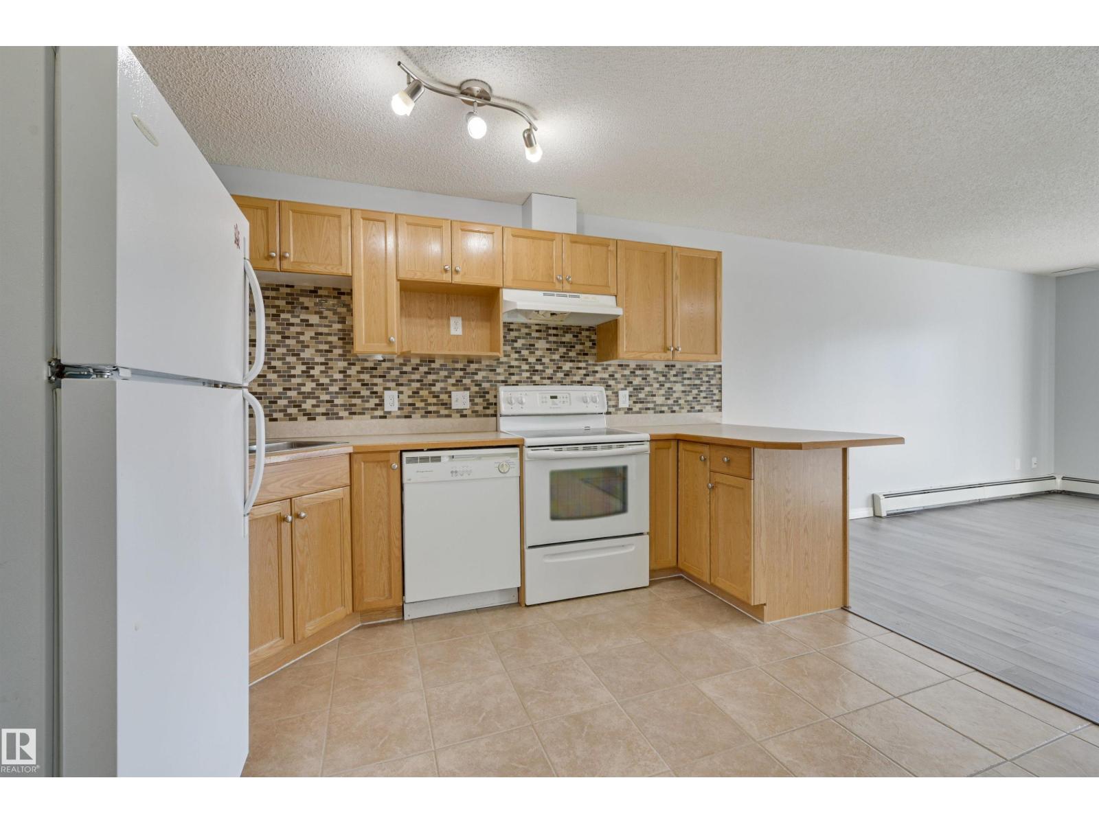 Welcome to this bright upgraded one bedroom condo in Park Place at Eaux Claires! Close to all amenities and easy access to the Anthony Henday. This suite is SW facing providing direct sunlight all day long with nice updates including flooring, paint, ceiling fan, and tile kitchen backsplash. There is a spacious living and dining area with laminate floors. Functional U-shaped kitchen with breakfast bar, oak cabinetry, and tile floors. The primary bedroom has plush upgraded carpets and modern ceiling fan. Main bathroom next to the bedroom complete with tub/shower. In suite laundry and there is a good sized in suite storage room. This suite comes with a titled parking stall. Very reasonable $372.39/mth condo fee which covers heat and water utilities. A fresh, bright, and move in ready home with at an affordable price point! Conveniently located right next to a major shopping district and Eaux Claires public transportation hub. (33861528)