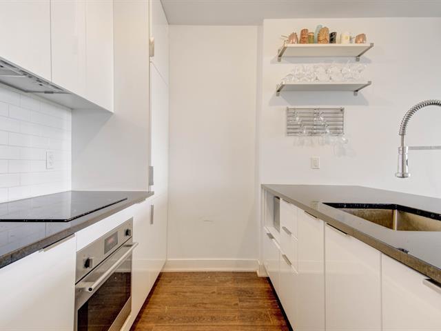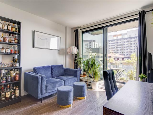 Perched on the 15th floor, this bright and modern 1-bedroom, 1-bathroom condo offers an inviting open-concept layout designed for comfortable urban living. Large windows and a private balcony provide abundant natural light that fills the entire space, while the sleek kitchen features contemporary cabinetry and elegant quartz countertops. Residents enjoy access to premium amenities, including a rooftop terrace with pool and city views, a fully equipped gym, an urban chalet lounge, and 24/7 security. Ideally located in the heart of Griffintown near cafés, restaurants, parks, transit, the REM, and the Lachine Canal. (50517059)