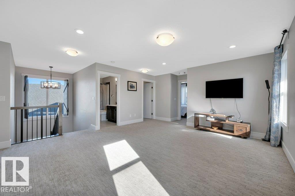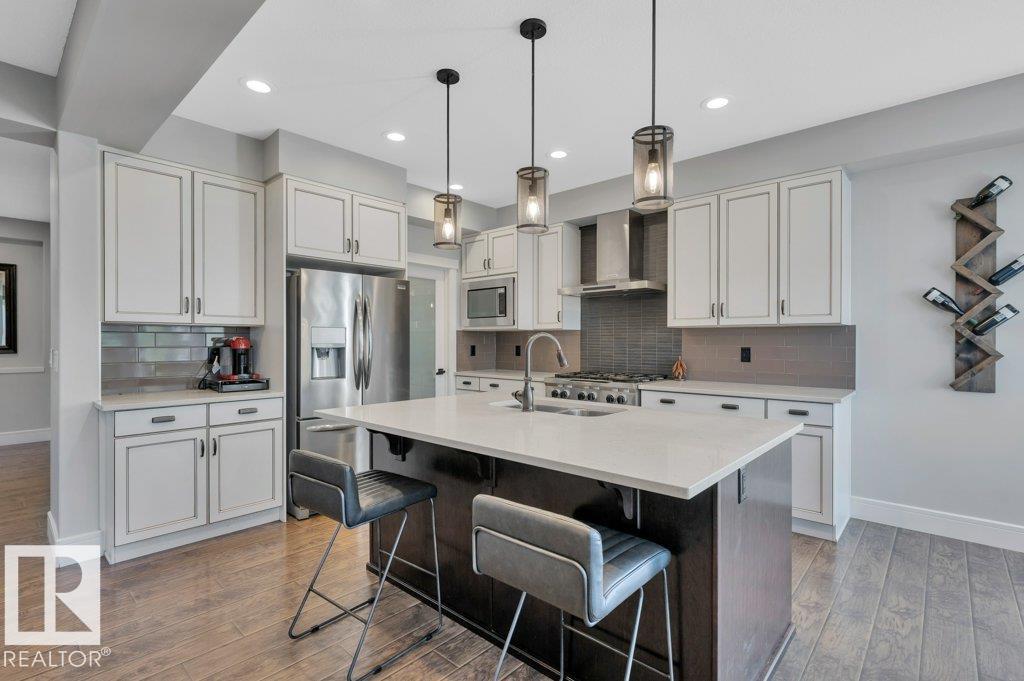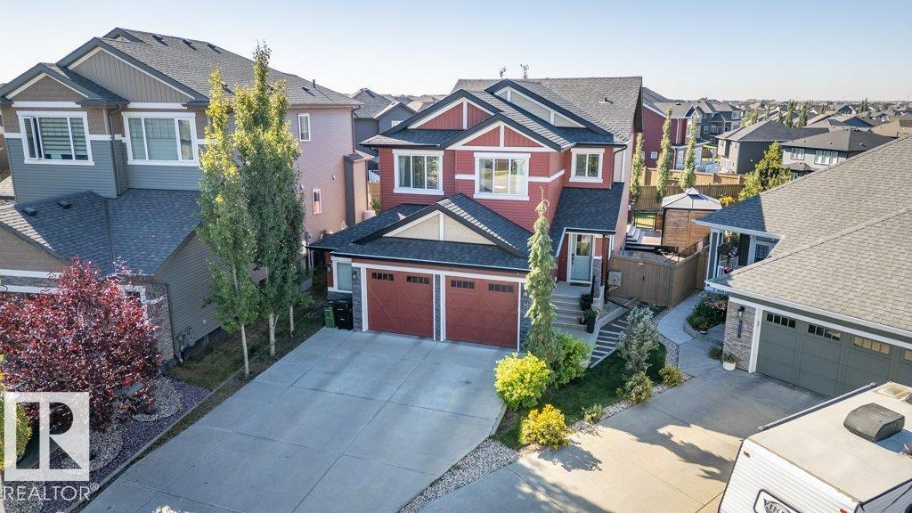 Welcome to the Walker Community! This 2 storey home shines with pride of ownership. Offering luxury and comfort on 3 levels. Main floor welcomes you to a large foyer, extensive closet space, bathroom and den/office room. Access the garage from foyer for winter convenience. Open concept is fantastic for entertaining, gas F/P, numerous yard facing windows give natural light. Gourmet kitchen with walk-in pantry, 6 burner gas stove and large island, all opening up to beautiful landscaped yard with gazebo, tiered deck, numerous plants and trees. All fenced in to perfection. The upper level hosts laundry room, 2 spacious bedrooms and impressive primary suite with spa-like ensuite to enjoy and pamper yourself. Fully finished basement is set up with Edmonton Oilers themed theatre room and bar. Large full basement bathroom with floor to ceiling tiles is shower are complimented with LED lighting! All this just steps away from walking paths, schools and parks. Move right in! (33861739)