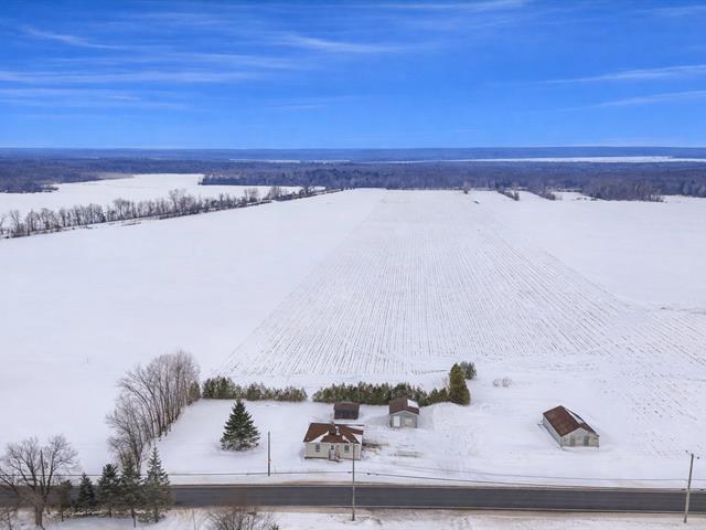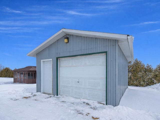 Welcome to 84 Rang St-André, St-Bernard-de-Lacolle ! 36,296 SQ.FT. / DETACHED GARAGE / SHED / METAL ROOF Single-story home featuring 2 bedrooms on a landscaped 36,296 sq. ft. lot with no rear neighbors and scenic field views. Includes detached garage on a concrete slab, shed, and gazebo! Several renovations completed: spray foam insulation in the basement, exterior siding, painting, and more!Perfect location for those seeking peace and quiet while remaining just minutes from Highway 15, providing easy access to key destinations (30 minutes to the Champlain Bridge). (49951281)