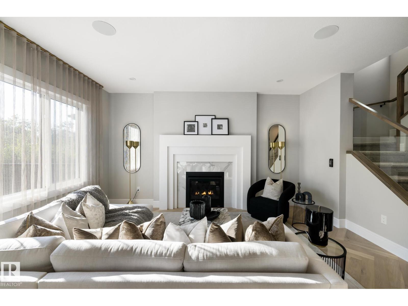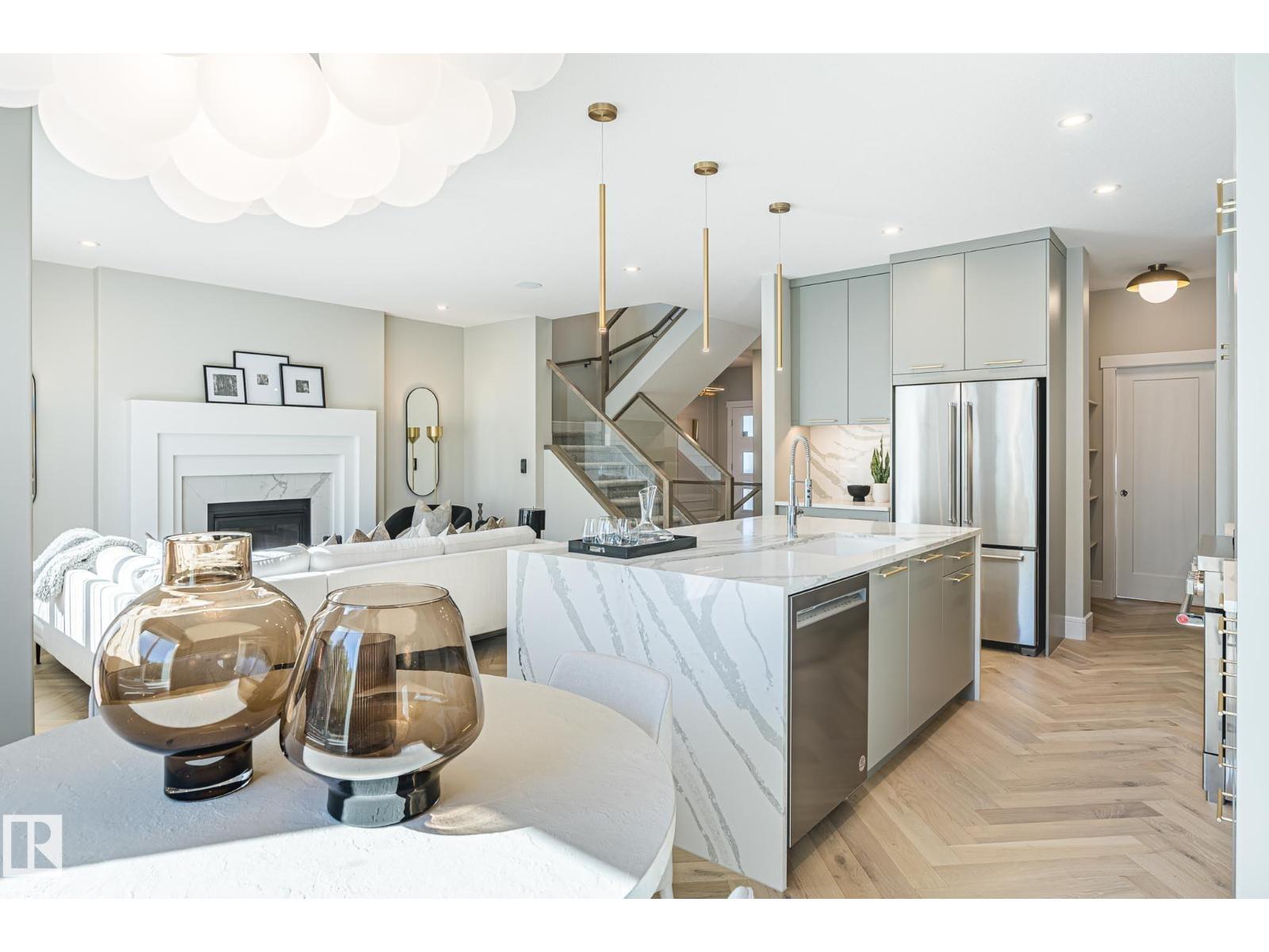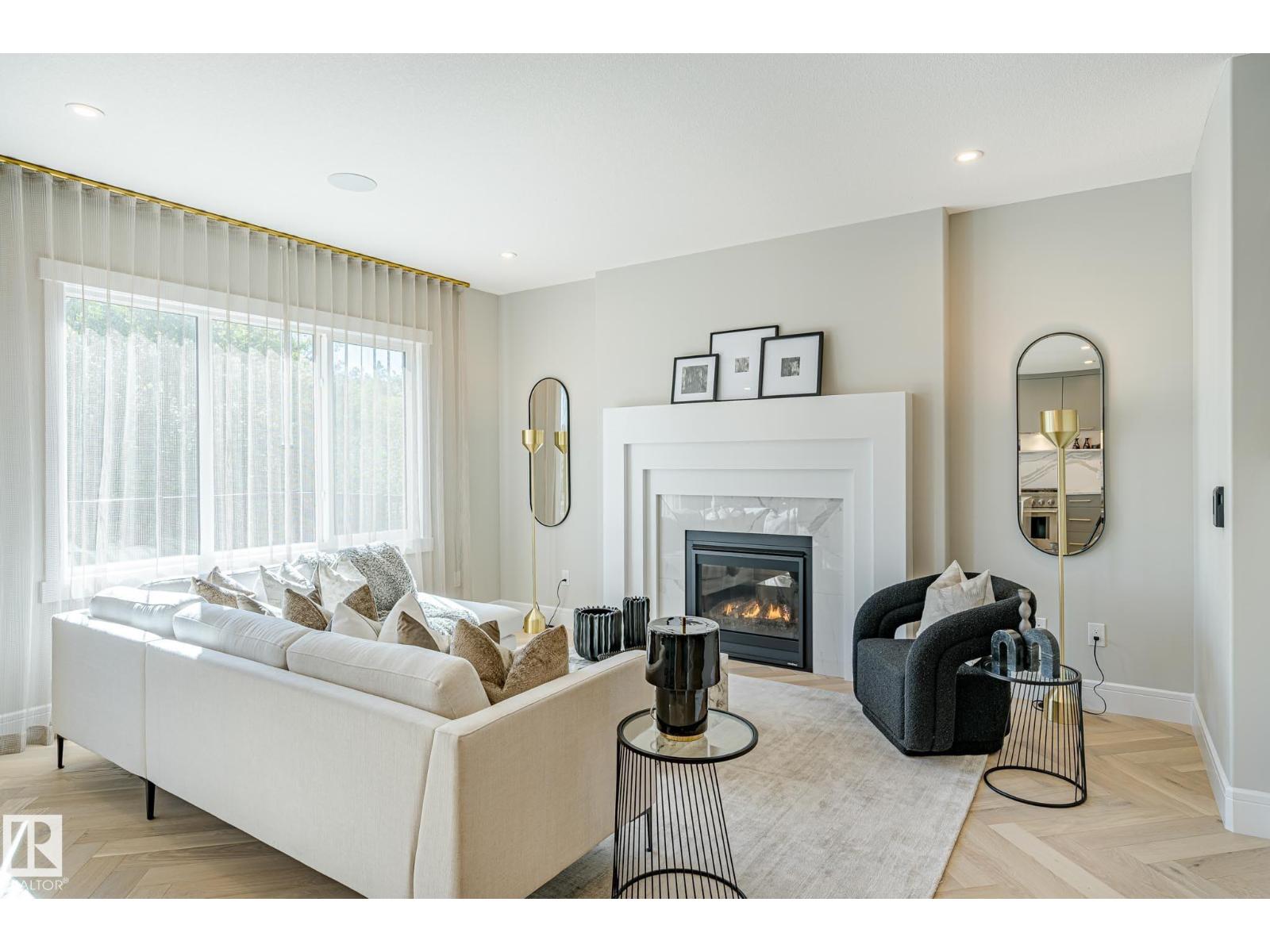 Designed to leave a lasting impression, this former Coventry Homes showhome captures the perfect balance of luxury and comfort. The main floor showcases 9’ ceilings (also in the basement), herringbone hardwood, and a showstopping kitchen w/ stainless steel appliances, gas stove, waterfall quartz island, full quartz backsplash, upgraded cabinetry, and walkthrough pantry. Gather in the inviting living room around the stunning mantel and gas fireplace, while a dining area, main floor den, mudroom, and half bath add everyday ease. Upstairs, the spacious primary suite offers a walk-in closet and spa-like ensuite w/ freestanding tub, tiled glass shower, and dual sinks, plus a bonus room, 2 bedrooms, full bath, and laundry. The finished basement features a 2-sided fireplace, wet bar, rec space, 4th bedroom, games area, and full bath. Landscaped yard, deck, and double attached garage complete this exceptional home. (33861907)