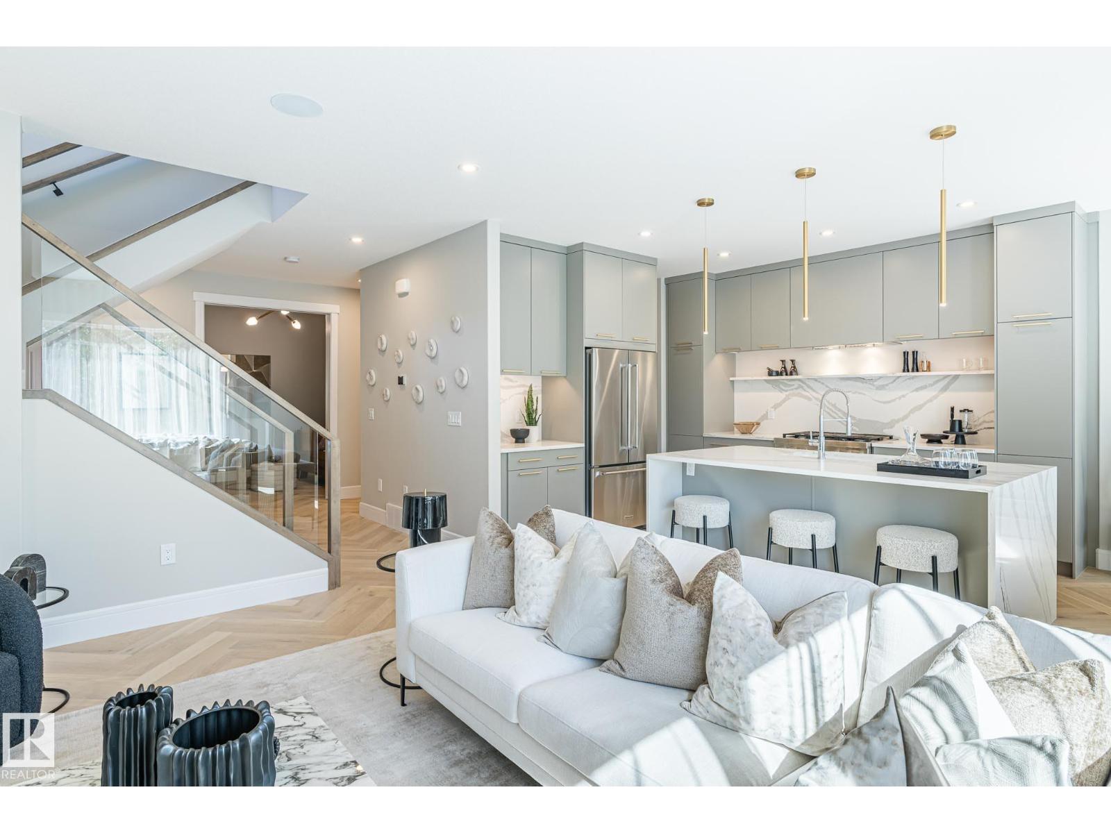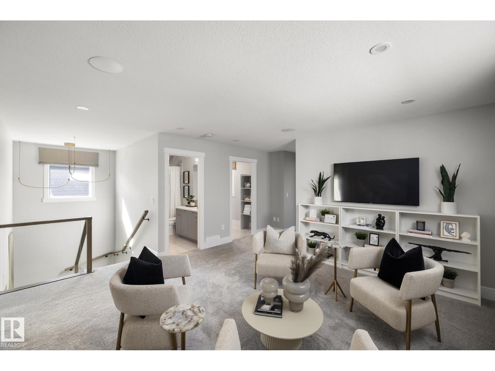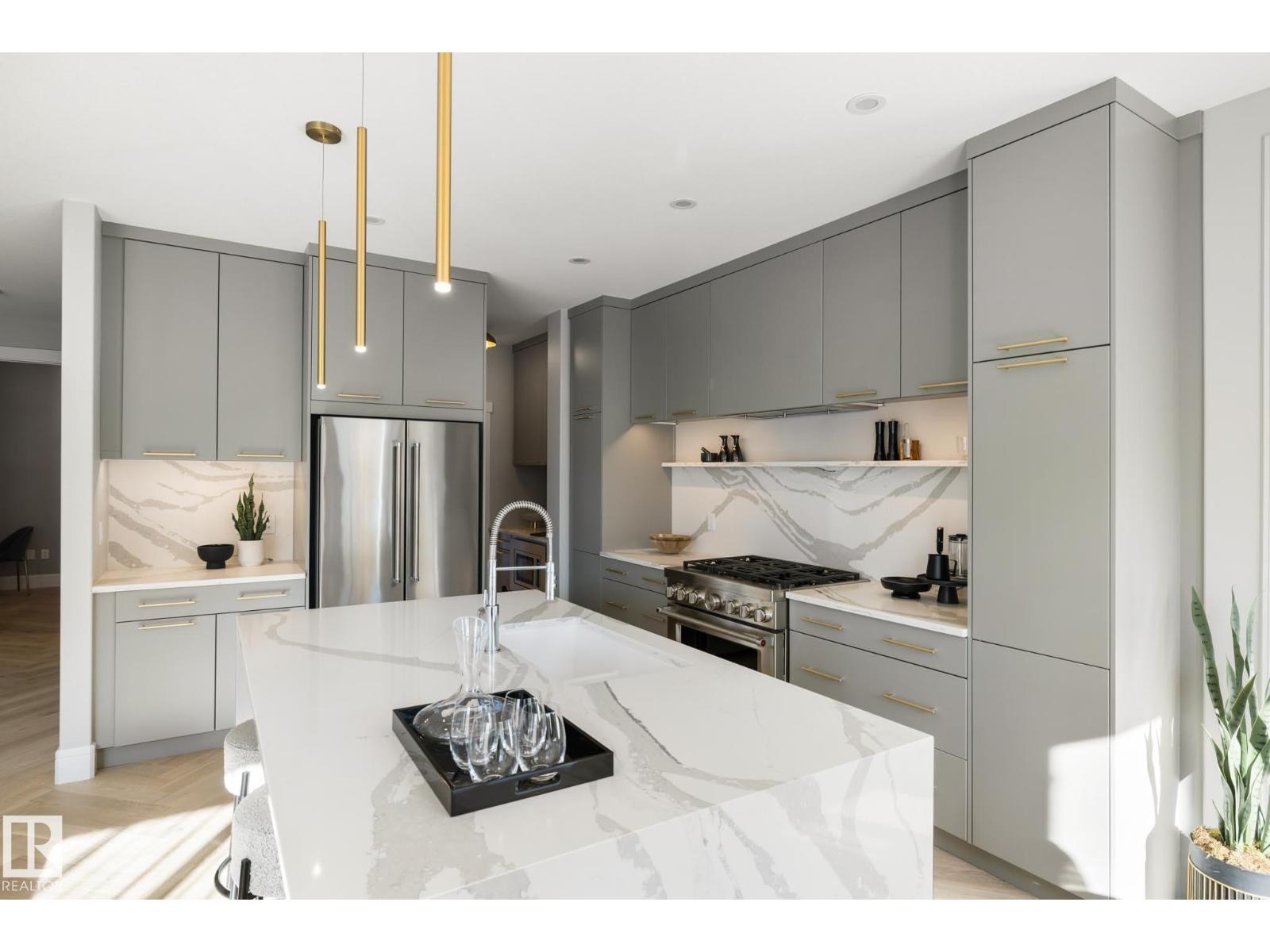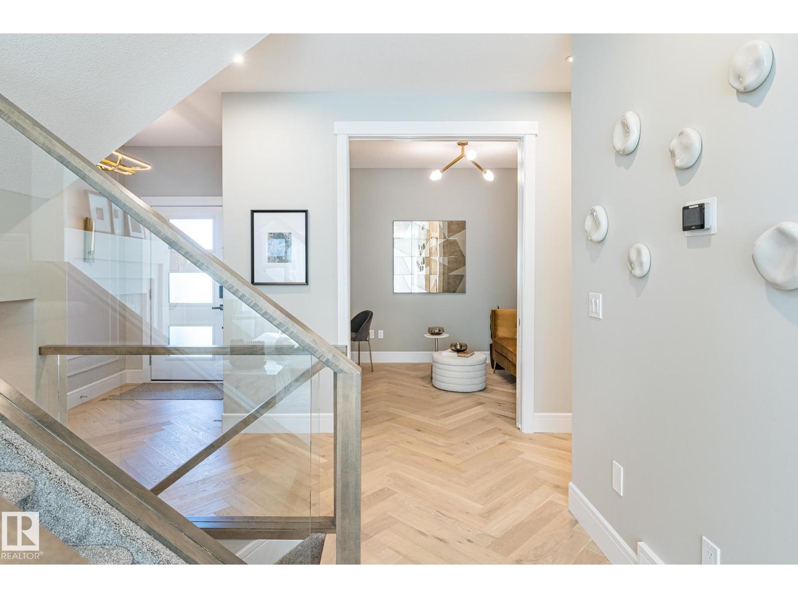 Designed to leave a lasting impression, this former Coventry Homes showhome captures the perfect balance of luxury and comfort. The main floor showcases 9’ ceilings (also in the basement), herringbone hardwood, and a showstopping kitchen w/ stainless steel appliances, gas stove, waterfall quartz island, full quartz backsplash, upgraded cabinetry, and walkthrough pantry. Gather in the inviting living room around the stunning mantel and gas fireplace, while a dining area, main floor den, mudroom, and half bath add everyday ease. Upstairs, the spacious primary suite offers a walk-in closet and spa-like ensuite w/ freestanding tub, tiled glass shower, and dual sinks, plus a bonus room, 2 bedrooms, full bath, and laundry. The finished basement features a 2-sided fireplace, wet bar, rec space, 4th bedroom, games area, and full bath. Landscaped yard, deck, and double attached garage complete this exceptional home. (33861907)