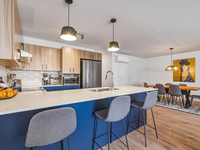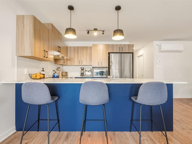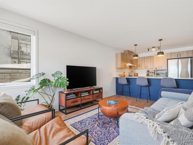 Stunning corner unit located on Rue de Champagnier in Brossard! Featuring 2 bright bedrooms, a full bathroom with separate bathtub and shower, and a modern kitchen with quartz countertops, this stylish condo is sure to impress. Private terrace, outdoor storage, and parking included. GCR warranty valid until July 2027. Prime location near the REM, Quartier DIX30, schools, and major highways. Ideal for owner-occupants or investors. Book your visit today! (47582912)