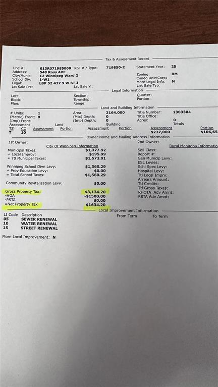 5A//Winnipeg/Offer March 01 after 5 pm. 548 Ross Ave! A great sized Bungalow that features 3 main floor Bedrooms, 1050 sq ft of Living Space that is perfect for larger families! There is an additional 2 bedrooms on the lower level. A bright and spacious living room and formal Dining room alongside a large kitchen, fully developed basement, extra full bathroom, rec room, and other spacious entertainment area. Great double garage with recently updated garage door and door opener. Upgrades : include new hot water heater installed in 2021, high efficiency furnace, new shingles on garage roof in 2025, new Eavestroughs installed in 2025. New front and back steel doors 2025. All Furniture and Appliances remain included at the property. Home sold in as is condition. NET PROPERTY TAX : 1,635 YEAR 2025 (231990766)