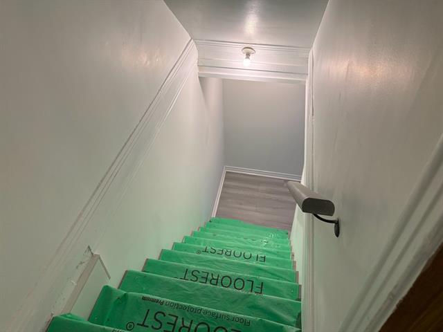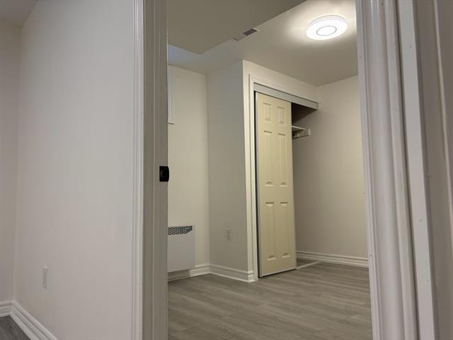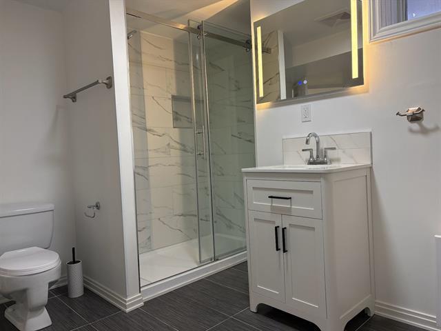 This renovated apartment is one unit of a duplex. Excellent location, facing the Park Leroux, which provides tennis courts, swimming pool, playgrounds, etc. Walking distance to St-Lawrence river, bike paths. Close to the LaSalle Rapides, an ideal place for kayaking, surfing, and rafting. The unit offers front and rear balconies, 4 bedrooms, and 2 full bathrooms. New painting, new renovated bathrooms, nice and clean hardwood floor, central heating and cooling, air exchange system installed. One outdoor parking. (54781666)