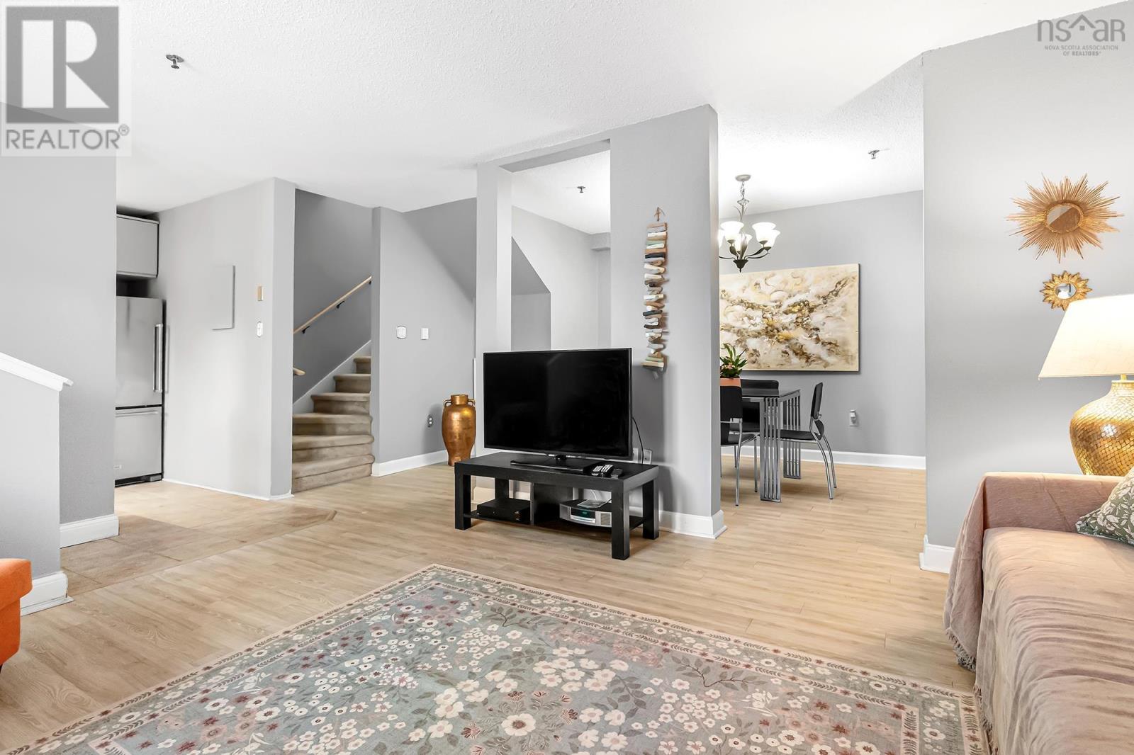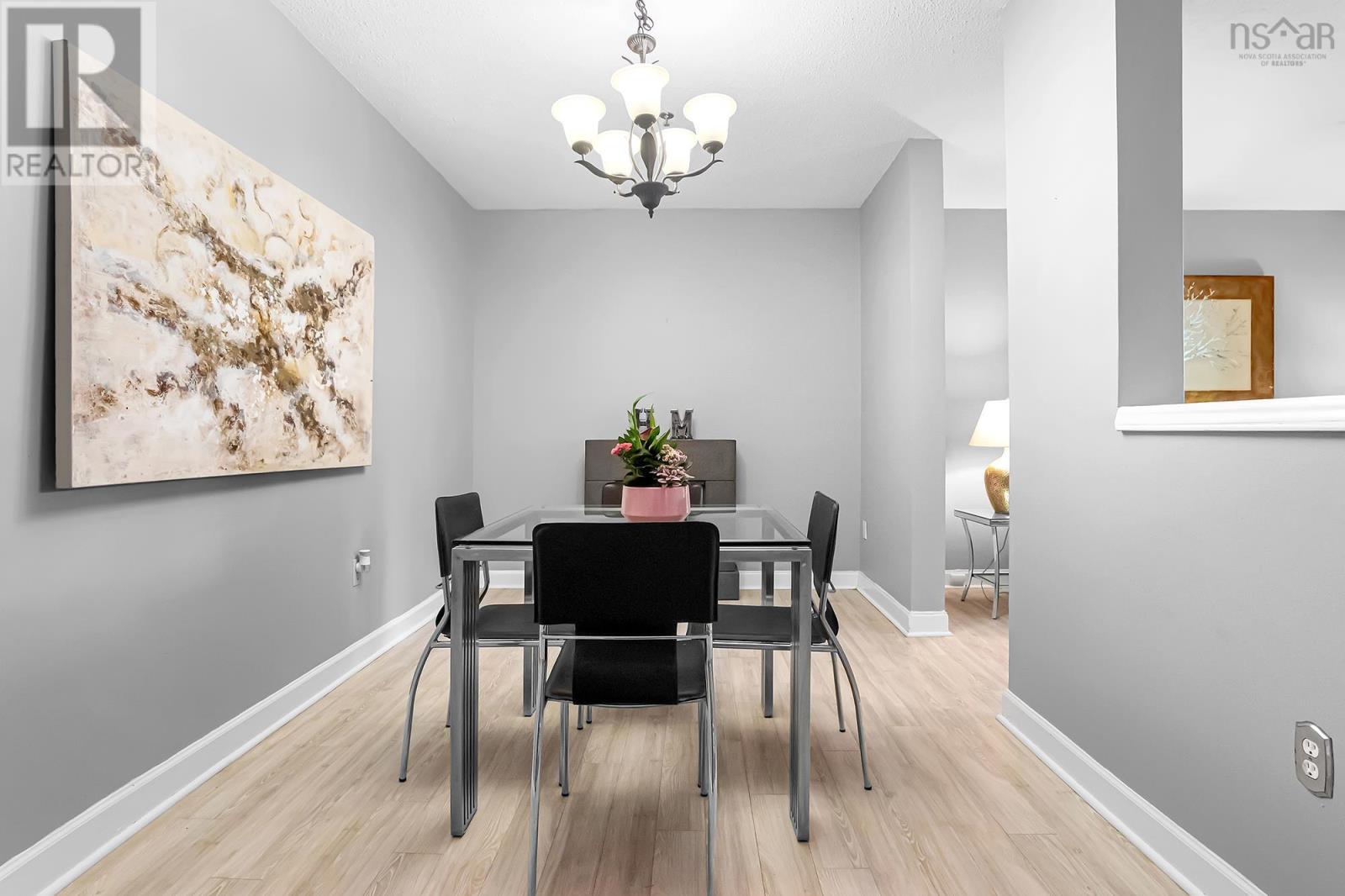 Welcome to Unit 104 at 158 Farnham Gate Road, a beautiful 2 story 2-bedroom, 1.5-bathroom condo offering modern comfort and style in the heart of Clayton Park West. The kitchen features newer cabinetry, countertops, sink, and a custom backsplashperfectly complementing the living and dining area, ideal for both everyday living and entertaining. Large windows flood the space with natural light, creating a bright and airy atmosphere throughout. The main level offers a convenient walkout to your own patio, providing an easy access to the parking lot, for easy access for bringing in groceries. The powder room is located in between the stairs. Upstairs, youll find a spacious primary bedroom with balcony, a second bedroom, ample storage, in-unit laundry, and a beautifully renovated main bathroom. Located close to parks, schools, shopping, and all the amenities Clayton Park West has to offer. (231991042)