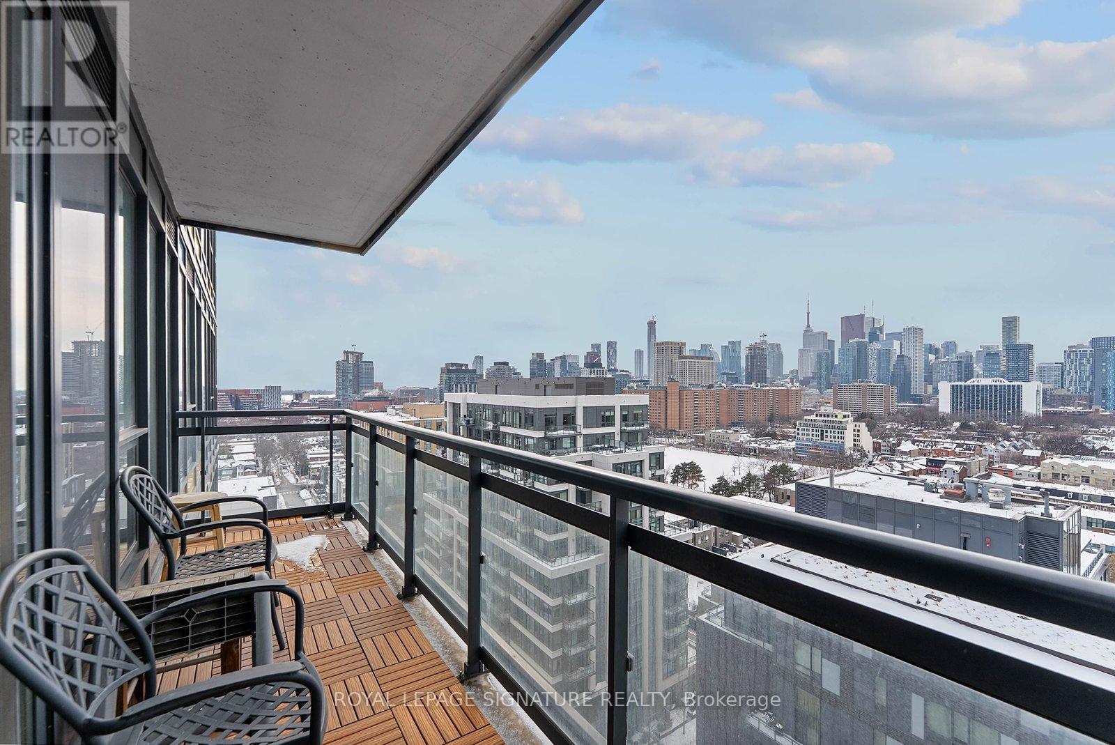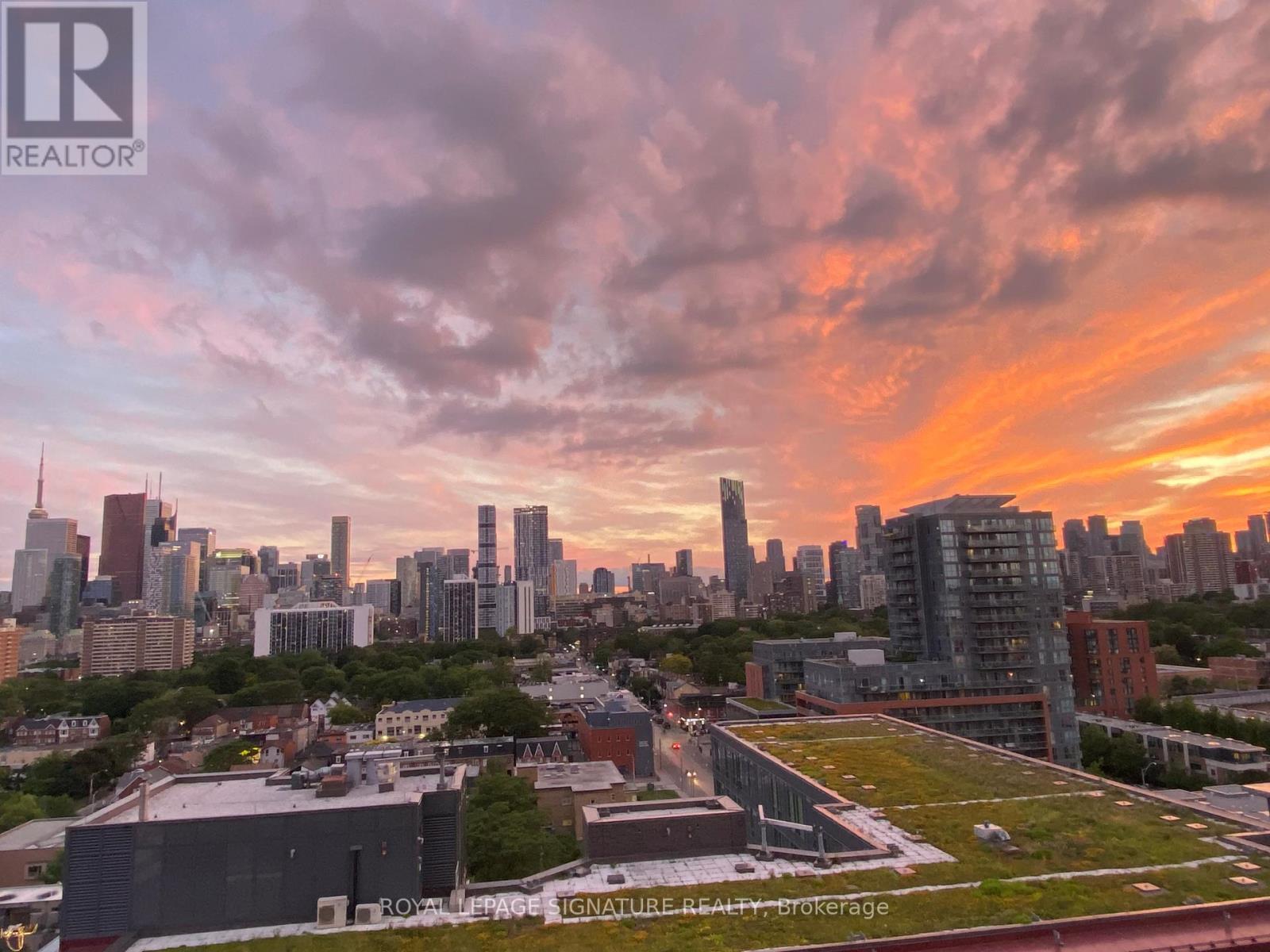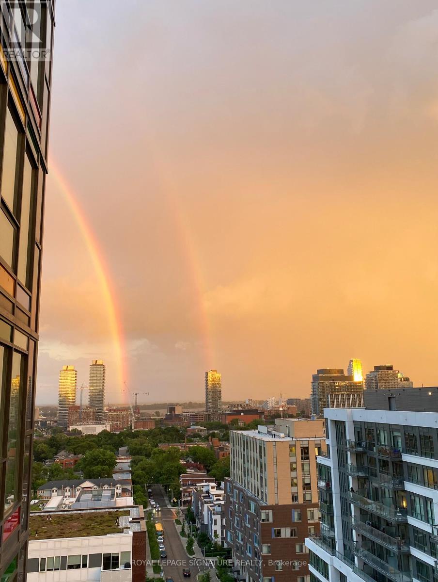 Bright 1+den with two bathrooms, parking, and unobstructed west-facing skyline views.Welcome to Suite 1405 at Paintbox Condos - a well-designed home with 9-foot ceilings and a functional open-concept layout.The living and dining area is filled with natural light and walks out to an oversized balcony - ideal for morning coffee or sunset views across the skyline. The modern kitchen features full-sized stainless steel appliances, generous counter space, ample storage, and a new dishwasher. The spacious primary bedroom offers a private 4-piece ensuite, complemented by a second 3-piece bath for guests or shared living. A large den provides flexibility for a dedicated home office, nursery, or additional living space.Includes 1 parking space, 1 locker, and ensuite laundry. Amenities feature a gym, party room, guest suite, BBQ terrace, theatre room, games room, and lounge.Steps to TTC and minutes to Eaton Centre, Riverdale Park, and the Distillery District, with quick access to the DVP and Gardiner. Move-in ready, functional, filled with natural light and a spectacular view - a space that truly feels like home. (42198892)