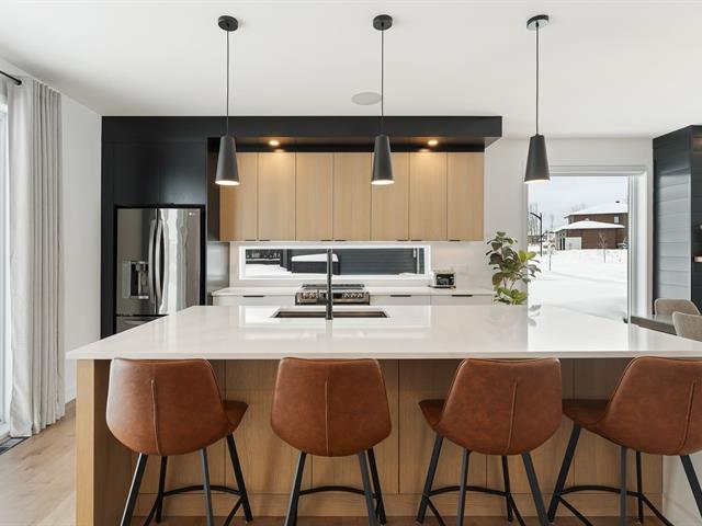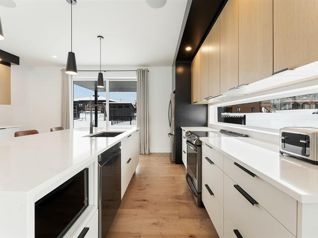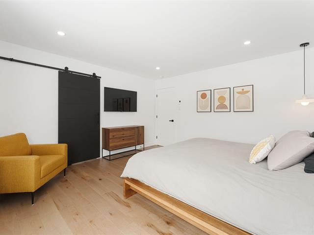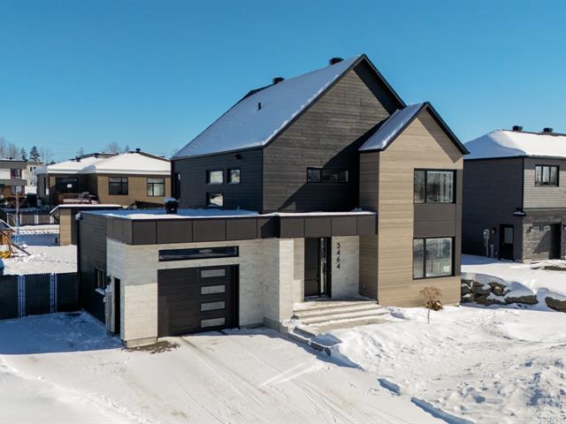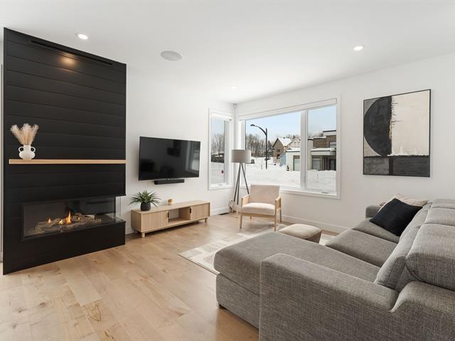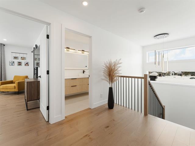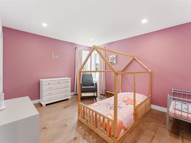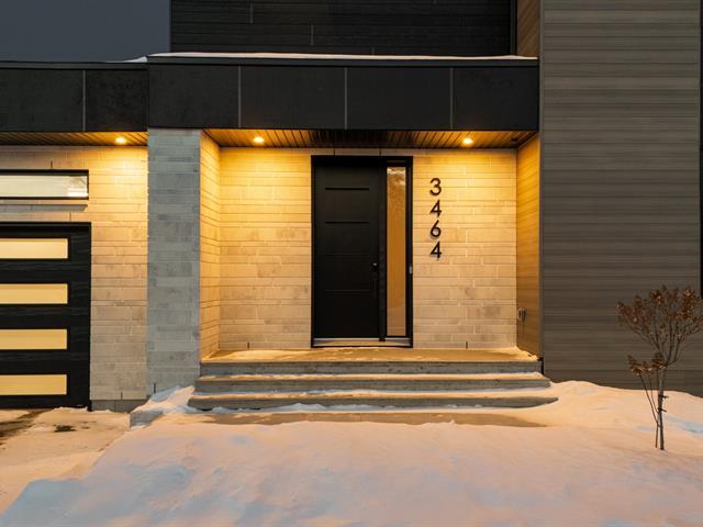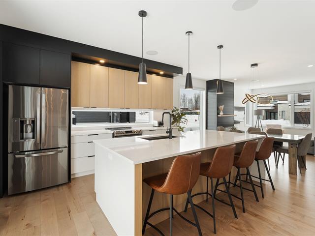 Elegant property with attached garage on fenced lot in the McCrea Plateau neighborhood. It offers 5 bedrooms, 2 bathrooms, and 1 powder room. The open-concept ground floor includes a living room with gas fireplace, dining room, kitchen, powder room, and game room. The kitchen is equipped with an island/lunch counter, quartz countertops, a walk-in pantry, and a patio door opening onto a covered terrace. Upstairs, there are 3 bedrooms with walk-in closets, a bathroom with a walk-in shower and freestanding bathtub, and a laundry room. The basement has heated floors and is finished with a family room, 2 bedrooms, and 1 bathroom. In-ground pool an (39174480)
