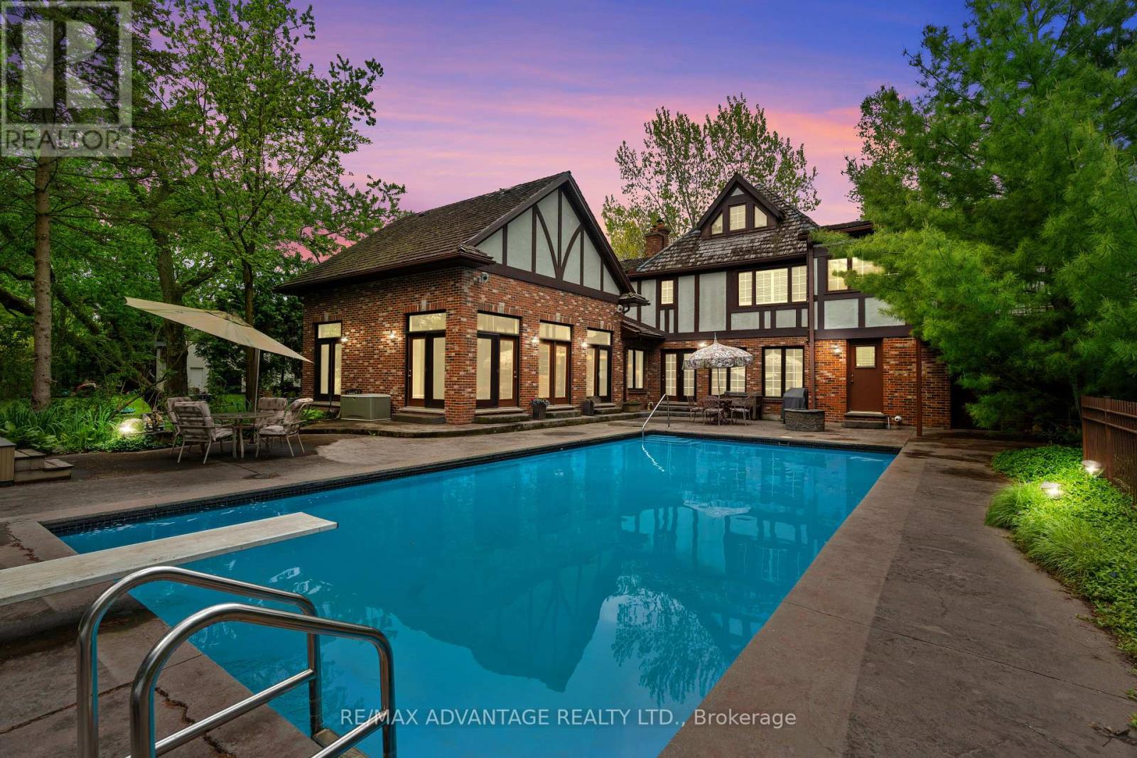 One-of-a-Kind Tudor Retreat in the Heart of North London known as the Exclusive Pill Hill Enclave. Step into elegance with this timeless residence nestled on a sprawling 1/2 Acre Private Treed Lot boasting a 100 foot frontage. The rich Architectural details commands attention from the moment you arrive. Inside, luxury meets function as you're welcomed by the Grand Italian-tiled-in-lay foyer flanked by an elegant formal living room, fireplace & beveled French doors for privacy. On the other side a lengthy formal dining area that extends to accommodate more than 20 seated guests accessing a rare lush English Private Courtyard and the Chef's Gourmet Kitchen. The Great Room with soaring 14 ft ceilings, walls of terraced doors & valances flood this space with natural light overlooking the picturesque green space and Olympic sized pool while maintaining privacy surrounded by 100 ft trees. This amazing extension is uniquely large, though cozy, where families gel. Indulge in the Primary Suite with an abundance of closet space, cedar lined hot tub room with spiral exterior staircase off of the expansive balcony to the lower terrace and pool. A unique third floor Parents Retreat is part of this Private Suite. The generously sized 4 + 1 Bdrms have their own En-suites/large walk in closets. Outside, escape to your resort-like oasis: inground pool, change area, washroom, hot tub, & tranquil pond flanked by multi stone terraces offer the ultimate in outdoor living & entertaining. The lower level features a home theatre with high ceilings / games room, gym area, separate quarters for visitors, in-laws, or a live in nanny with direct access from the oversized garage. This residence boasts the historic charm of yesteryear with the rare blend of modern function, classic design and ready for you to make it your own home. Stroll to Western University, LHSC Hospitals and Heritage Parks + Trails down the street. 5 mins to Masonville Place / 7 mins to Downtown London. Rare Find. (42199223)