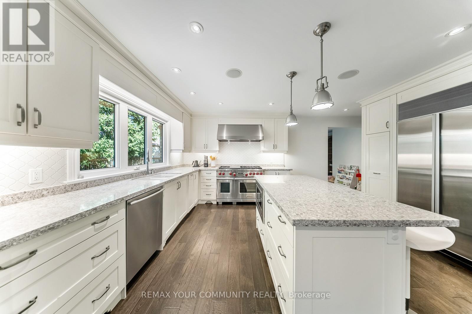 Welcome to 8 Spinning Wheel Court, a distinguished, fully renovated family estate quietly positioned on an exclusive cul-de-sac in the prestigious Bayview Glen enclave. Set on a rare, oversized pie-shaped lot, this exceptional residence offers a seamless blend of refined elegance, thoughtful design, and private resort-style living. Expansive principal rooms are impeccably proportioned and filled with natural light, creating a grand yet intimate setting ideal for sophisticated entertaining and elevated everyday living. The chef-inspired kitchen is a true showpiece, featuring extensive custom cabinetry, a substantial centre island, and a sunlit breakfast area designed for family gatherings and effortless hosting. The adjacent family room, anchored by a gas fireplace, enjoys tranquil views of the lush, landscaped backyard, offering an atmosphere of warmth and understated luxury. Step outside to a secluded outdoor sanctuary, where an expansive deck provides an exceptional setting for alfresco dining, lounging, and entertaining, surrounded by mature greenery and complete privacy. The main level is thoughtfully curated and includes a formal dining room, an elegant mudroom, direct interior access from the double garage, a refined powder room, and main floor laundry. Upstairs, the primary suite is a serene retreat, featuring a spacious walk-in closet and a spa-inspired ensuite designed for relaxation. Three additional generously sized bedrooms and a beautifully appointed four-piece bath complete the upper level. The finished lower level extends the home's versatility, offering a sophisticated recreation space, private gym, three-piece bath, and abundant storage. A rare offering on one of Bayview Glen's most coveted cul-de-sacs-delivering privacy, prestige, and a truly elevated family lifestyle. (42199220)