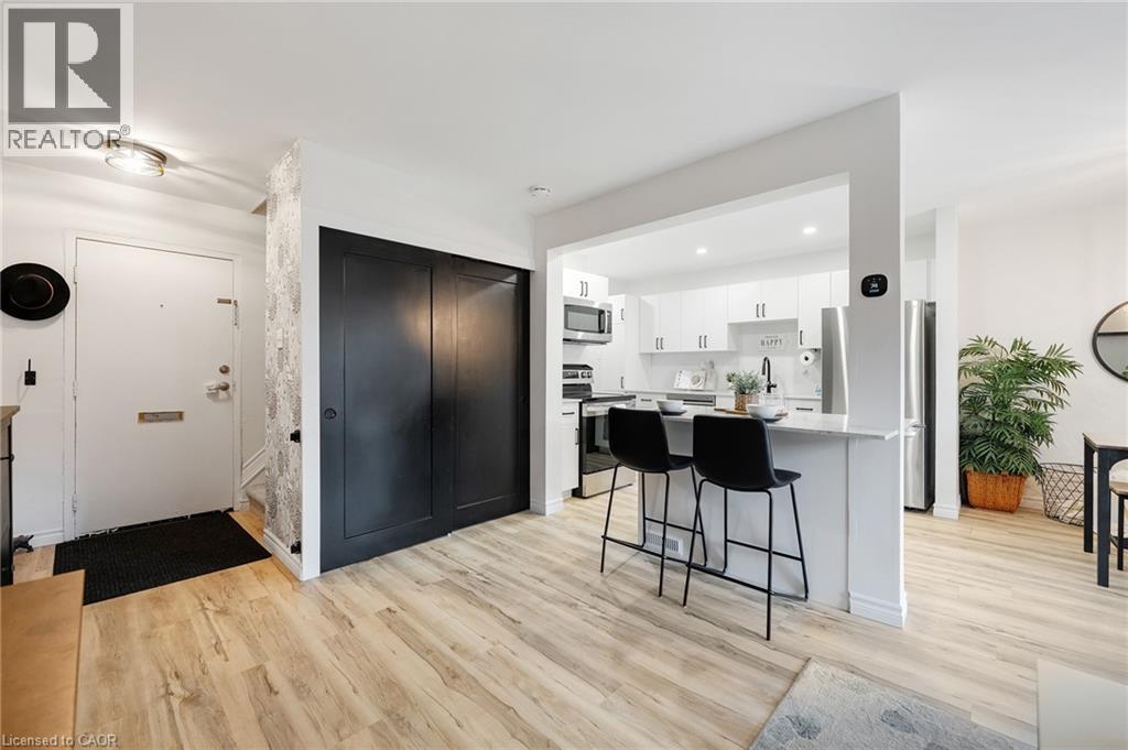 Stunningly renovated 3-bedroom, 1-bathroom two-storey condo townhome in St. Catharines desirable Carlton neighbourhood. Tucked away at the back of a quiet, family-friendly complex, this home offers added privacy, a fully fenced backyard, and a stylish, move-in ready interior. Features a bright, open-concept main floor with new vinyl plank flooring throughout, large principal rooms, and a custom kitchen with modern cabinetry, stainless steel appliances, quartz countertops, and a breakfast island. Sliding patio doors lead to a private yard with patio, green space, and a shed perfect for relaxing or entertaining. Upstairs includes 3 spacious bedrooms with contemporary finishes and a renovated 4-piece bathroom. The partially finished basement adds flexible space for a rec room, home office, playroom, additional bedroom or gym. Freshly painted throughout, move-in ready and located near parks, schools, shopping, and transit this home offers the benefits of condo living without compromising on space or lifestyle. (70194124)