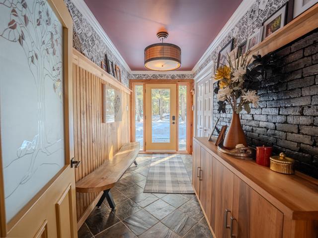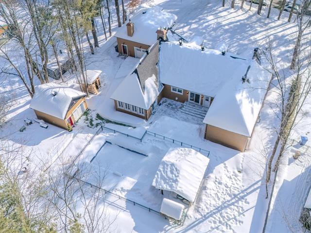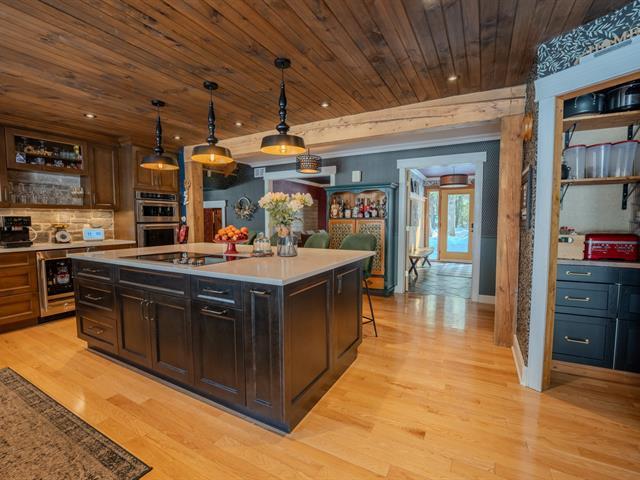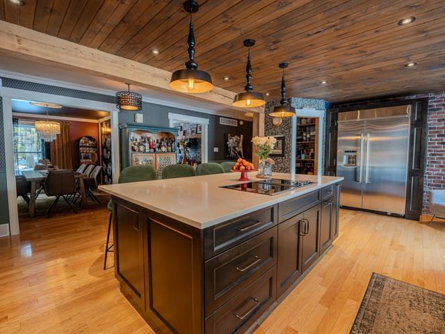 Prestigious property with a unique character, blending modern design and country charm, located in Mascouche on a quiet cul-de-sac close to all services. Wooded lot with no rear neighbors, offering privacy and tranquility. Landscaped yard featuring an in-ground pool and outdoor bar. Large double garage with 3 doors and a wood stove area, plus a detached garage ideal for a collector car or other vehicles. Impressive interior volumes: 4 bedrooms, including a primary suite with walk-in closet and private bathroom. Central kitchen opening onto a vast cathedral-ceiling living room with fireplace, a true showstopper. An exceptional address worthy o (52563182)