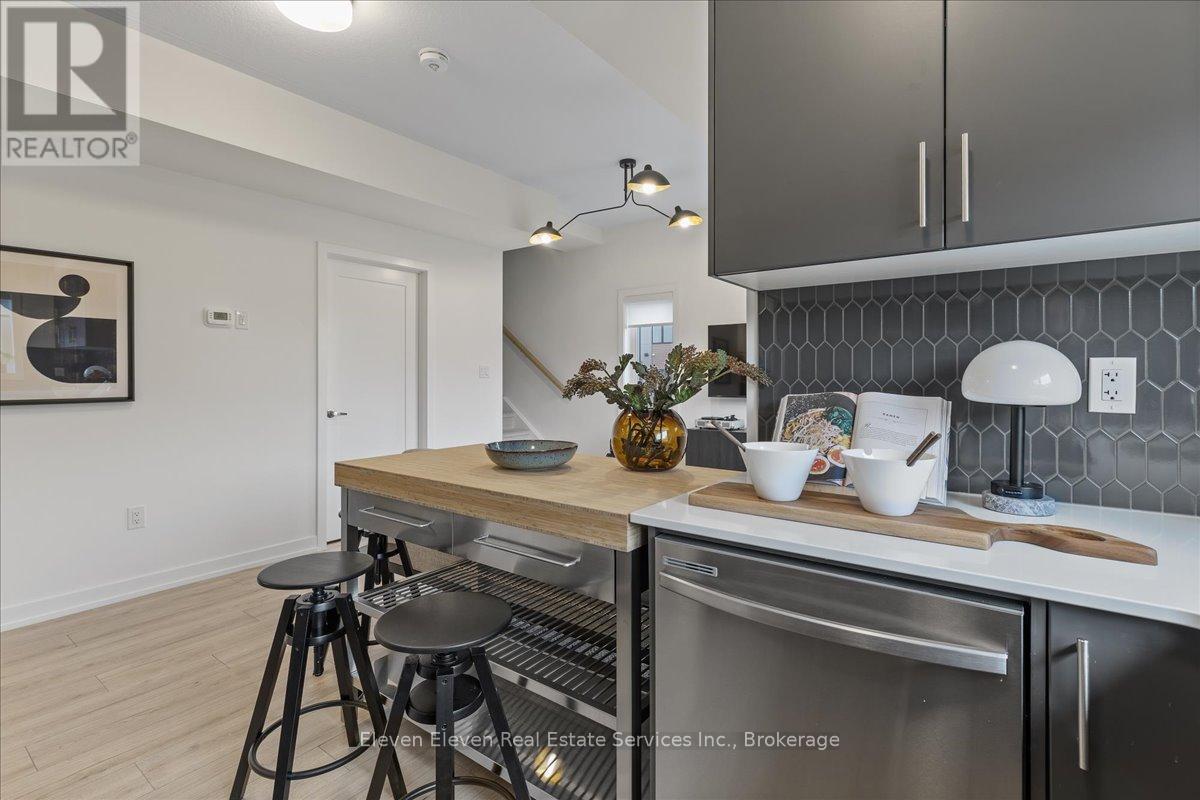 Step into contemporary living in Guelph with this 980 sq. ft., 2-bedroom, 2-bath interior stacked townhome designed for comfort, efficiency and style. This brand-new home features a smart open-concept layout, stainless steel appliances, quartz countertops throughout, and refined finishes that speak to the quality of Reid's Heritage Homes. Enjoy the convenience of one dedicated parking space and the advantage of buying directly from the builder, with First Time Home Buyer incentives available - a compelling option for both homeowners and investors. Set in the heart of South Guelph, the location checks every box: walkable access to shopping, dining, fitness centres, parks and transit, plus quick connections to the Hanlon and Highway 401. Just minutes from University of Guelph, this is a high-demand area for students, faculty, and professionals alike. Nearby trails and green spaces add a welcome dose of nature to everyday life. Modern finishes, a practical layout, and a location that performs - this is low-maintenance living with real upside in one of Guelph's strongest neighbourhoods.This home is not yet built. Photos are of Model Home, actual finishes may vary (42200187)