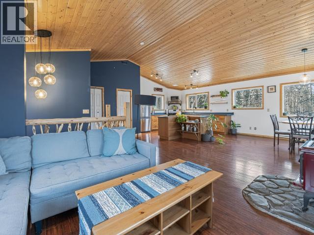 Welcome to 104 Kennedy Street in Haines Junction--where modern efficiency meets Yukon charm. This 1,510 sq ft, 2 bedroom, 1.5 bathroom home sits on a 7,200 sq ft lot in the heart of town, close to the school, trails, and amenities. The upper level impresses with vaulted pine ceilings, striking diamond willow banisters, a Pacific Energy wood stove, triple pane windows, and abundant natural light. The spacious kitchen offers generous prep space and storage, perfect for everyday living or entertaining. Downstairs features a large entry, flexible office space, two comfortable bedrooms, full bath, and utility area. Outside, enjoy a private treed yard, wood shed, durable metal roof, and covered deck for year-round enjoyment. (29405783)