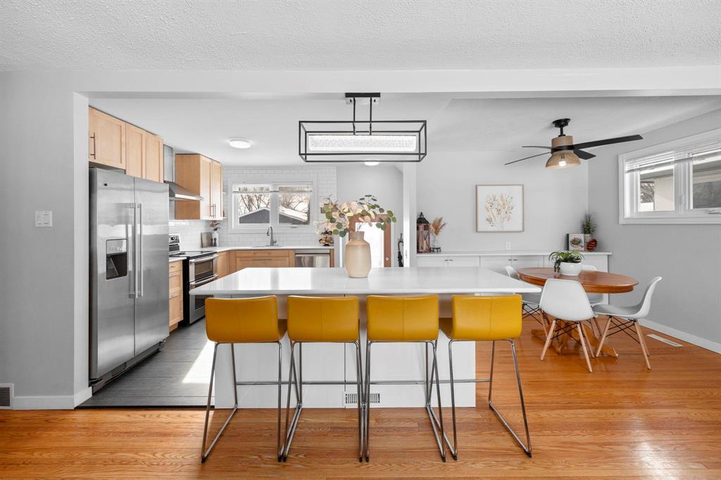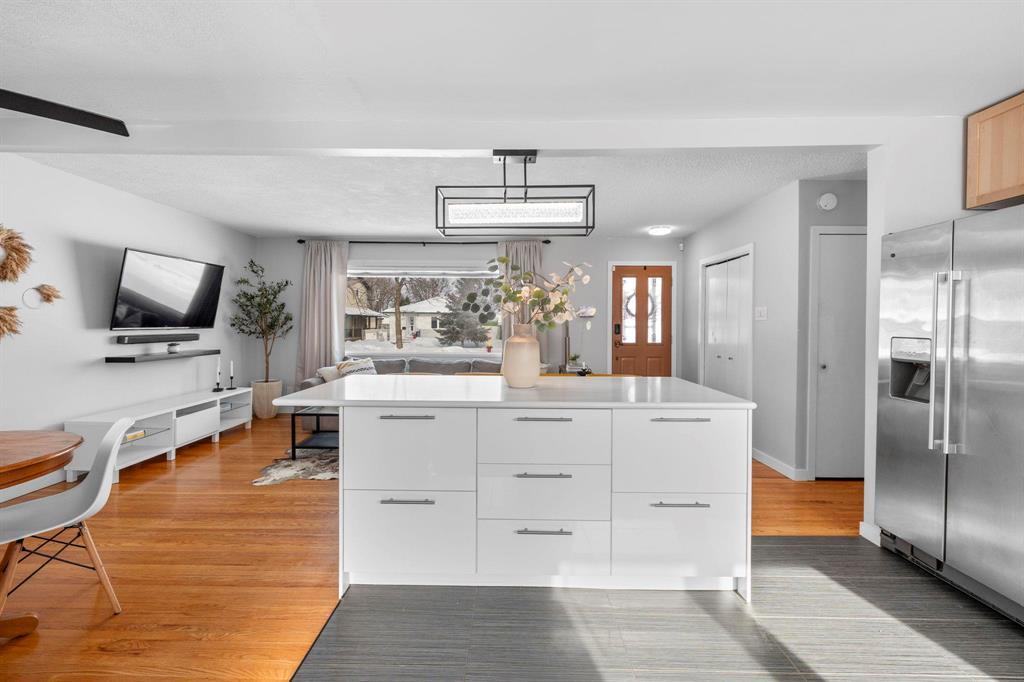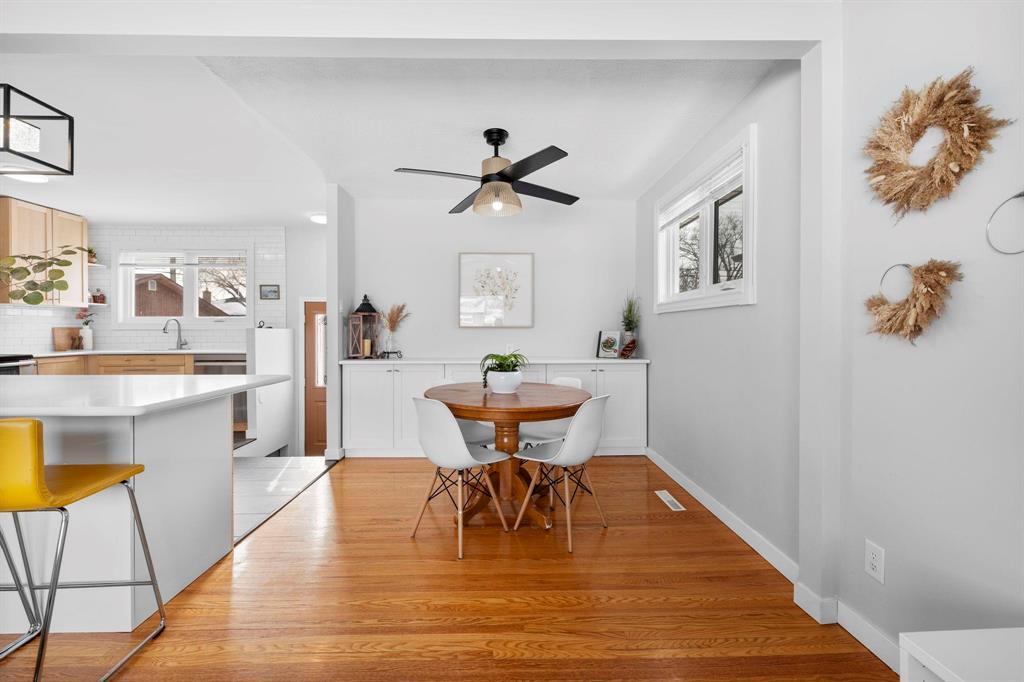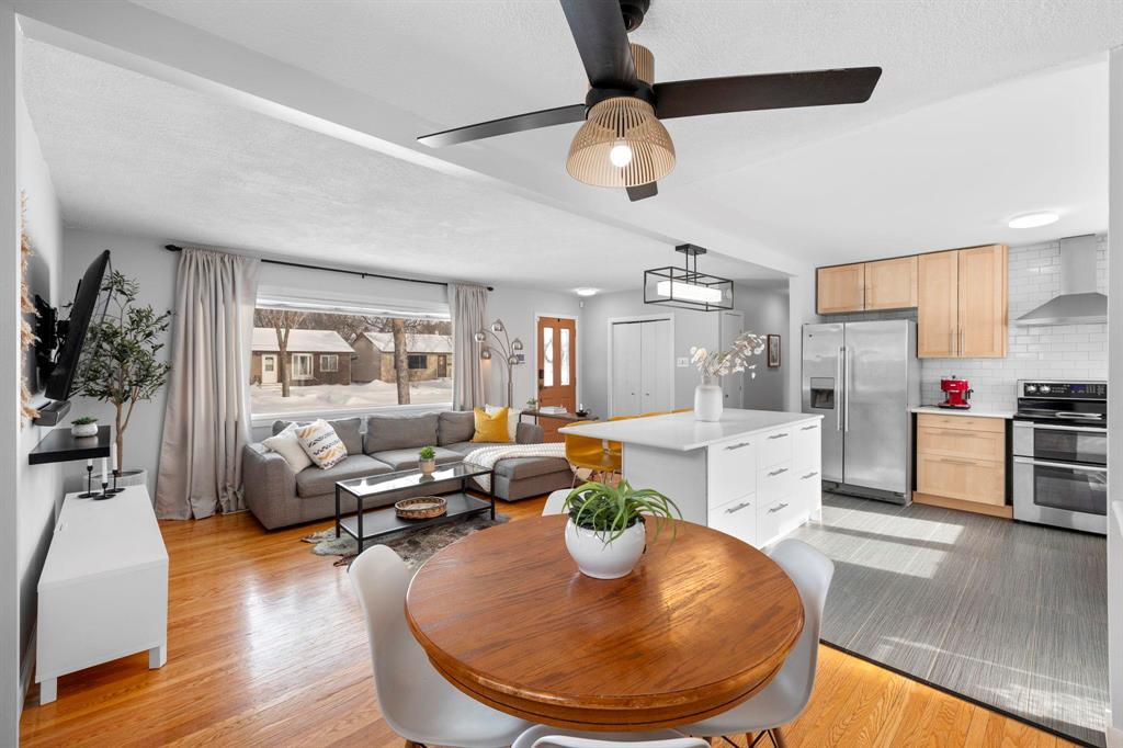 3M//Winnipeg/S/S Thurs. Feb. 26, offers Tues. Mar. 3 after 6 pm. This updated & bright bungalow on a quiet street offers style, function & comfort. Gleaming hardwoods & abundant natural light enhance the main level, while durable tile anchors the beautifully renovated kitchen featuring soft-close maple cabinetry, ss appliances, subway tile backsplash & large island w/breakfast bar seating for everyone. The open-concept LR & DR is ideal for entertaining, complete with a built-in buffet w/quartz counter & additional soft-close storage. Three main-floor bedrooms all showcase hardwoods & great natural light, including a primary bedroom w/slatted wood feature wall & built-in bed. The updated 4-piece bath includes a modern floating vanity & tile flooring. The fully finished bsmt offers excellent additional living space for relaxing, gaming or working out, w/new vinyl plank flooring & an updated 3-piece bath (2025). Major updates include most windows (2019), shingles & HEF (2018). HWT (2025). Enjoy the large fenced yard w/new fencing (2024), perfect for kids & pets, plus a DT/1 w/attached shed & parking pad for two more vehicles. Close to schools, parks & recreation...this solid home is move-in ready & won t last! (231991803)