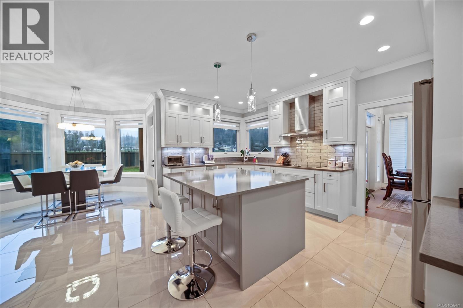 Homes like this rarely come up in Port Alberni! This custom-built home sits on a 0.29-acre lot just inside city limits, overlooking the Beaufort Mountains with views from nearly every angle. Offering 5 bedrooms & 3 bathrooms, it’s an ideal family home. No expense was spared, featuring 2 gas fireplaces, crown moulding, quartz counters, high-end Bosch & Samsung appliances, Schonbek chandeliers, coffered ceilings, built-in cabinetry, engineered hardwood & more. The main level offers a bright open living & dining area, spacious kitchen with eating nook, sunken living room, full laundry, 5th bedroom (perfect office) & powder room. Upstairs features the primary suite with luxurious ensuite bathroom, large walk in closet & stunning views, plus 3 additional bedrooms & a full bath. Exterior perks include a storage shed, irrigation, RV/boat parking & space for a future shop. This home must be seen to be appreciated! (30415512)