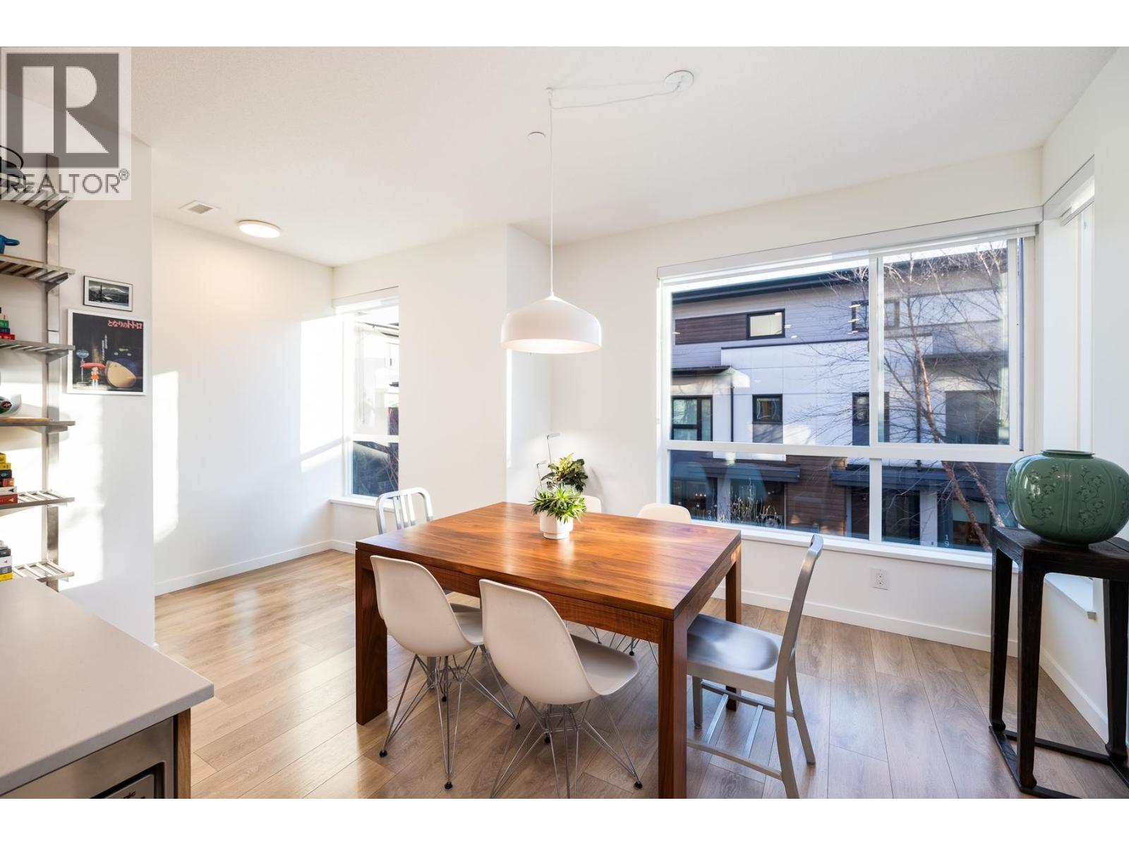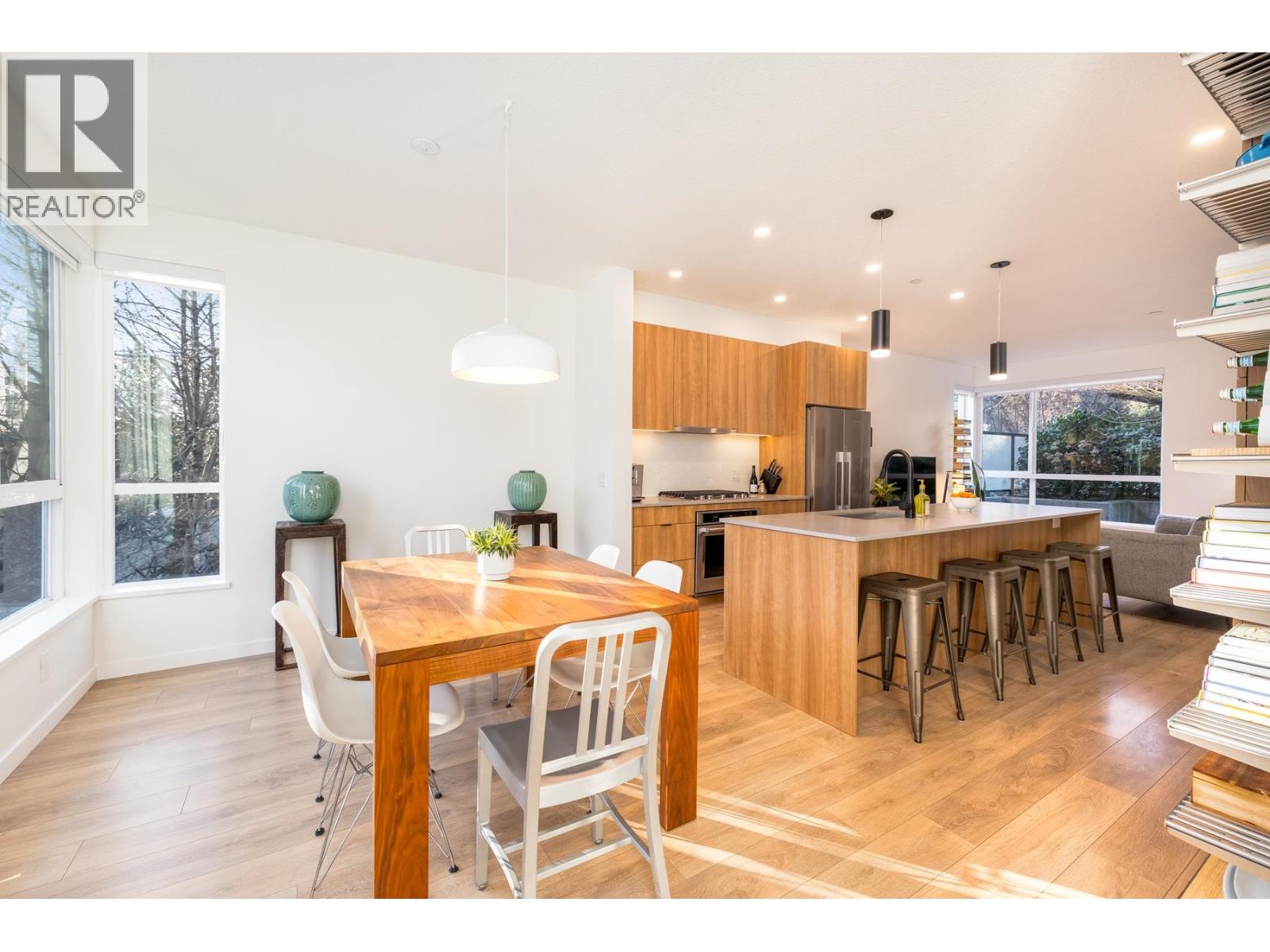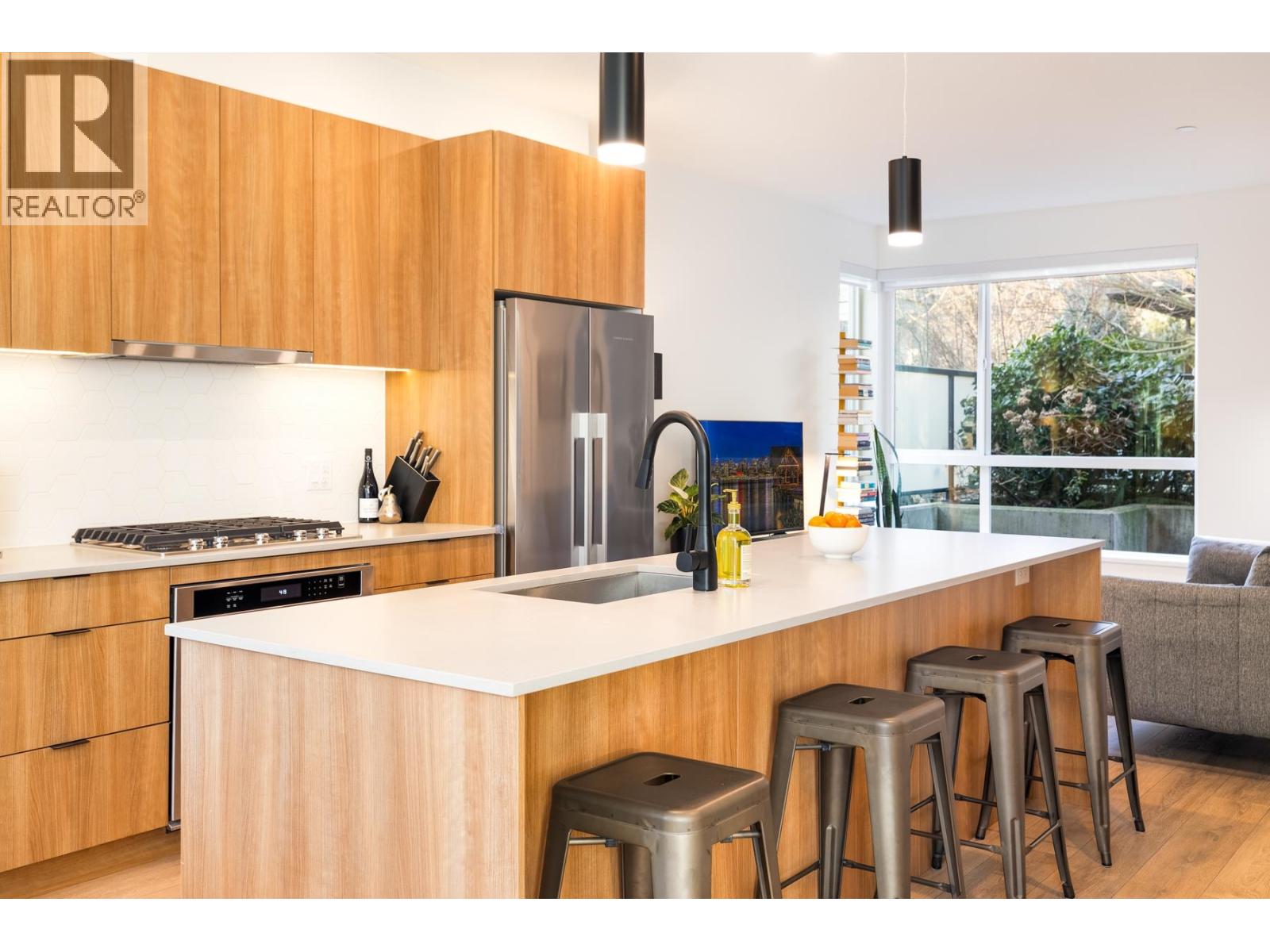 Welcome to Founders Block, a LEED Gold community by reputable developer Anthem Properties in the highly desirable Moodyville neighbourhood of North Vancouver. Arguably the nicest townhome in the complex, this exceptional south-west facing corner residence is flooded with natural light and positioned on the quiet side, offering panoramic city, water, and mountain views. This mint-condition 4-bedroom, 3-bath home features an open-concept layout with high ceilings, a stone island kitchen with gas range, radiant in-floor heating, office nook, upper laundry, oversized storage, a spa-like primary suite with walk-in closet and view deck, two secure parking stalls, and steps to Lower Lonsdale, the SeaBus, Moodyville Park, and The Shipyards. (32481456)