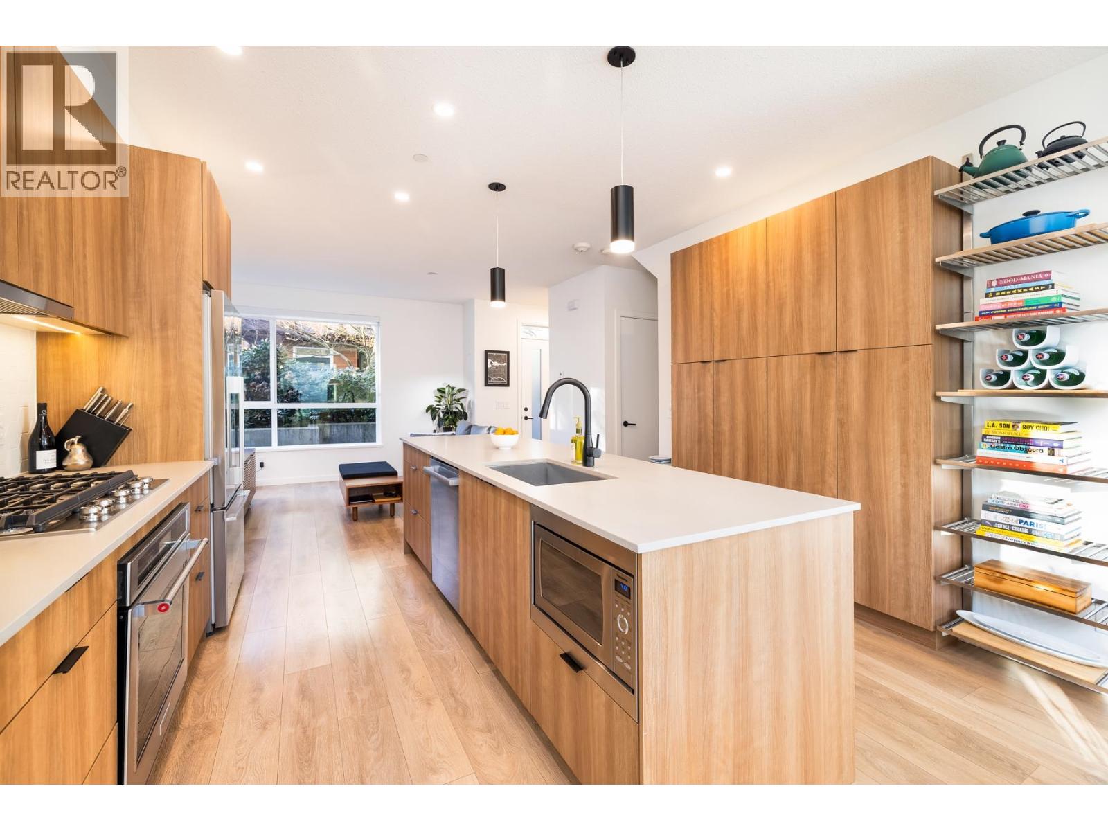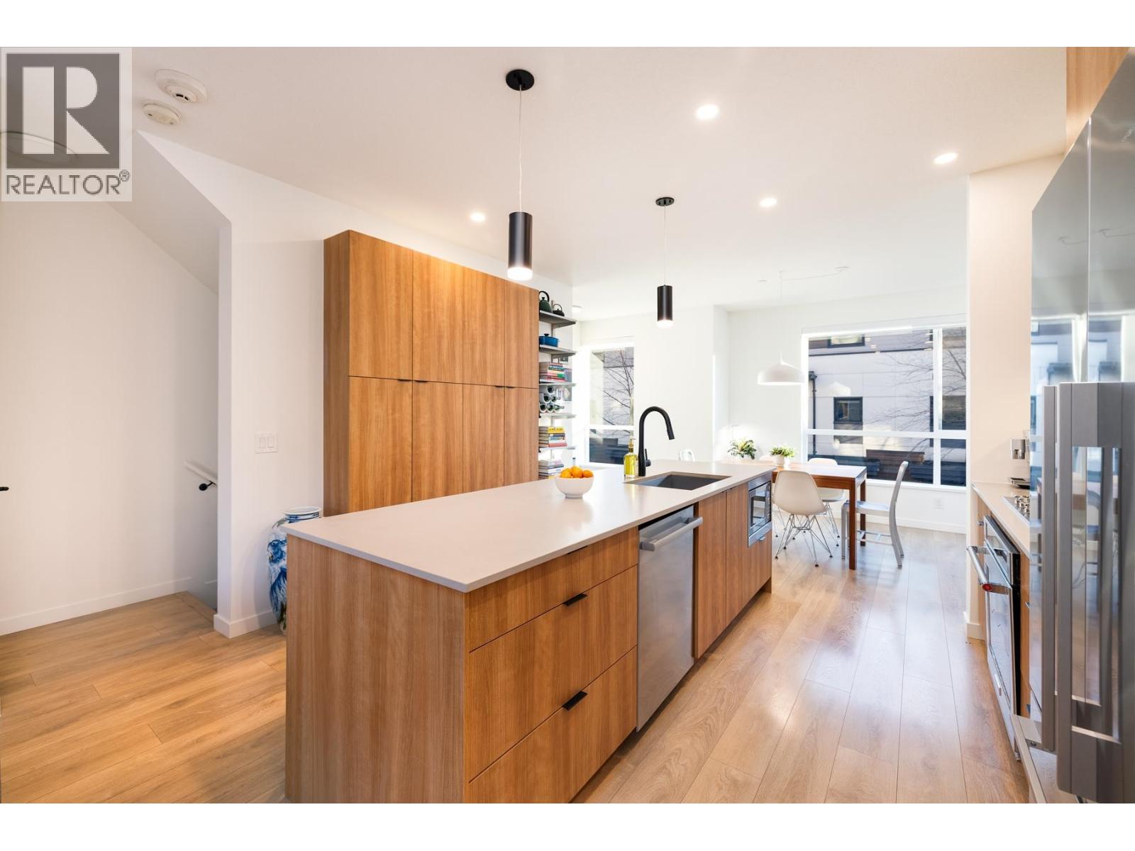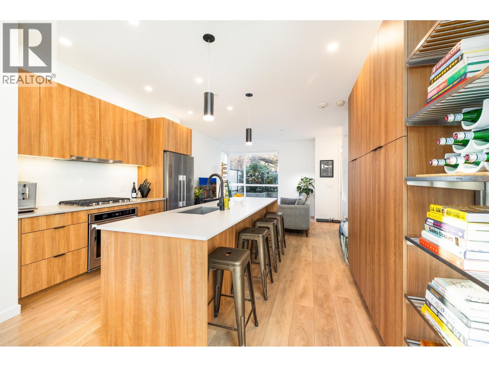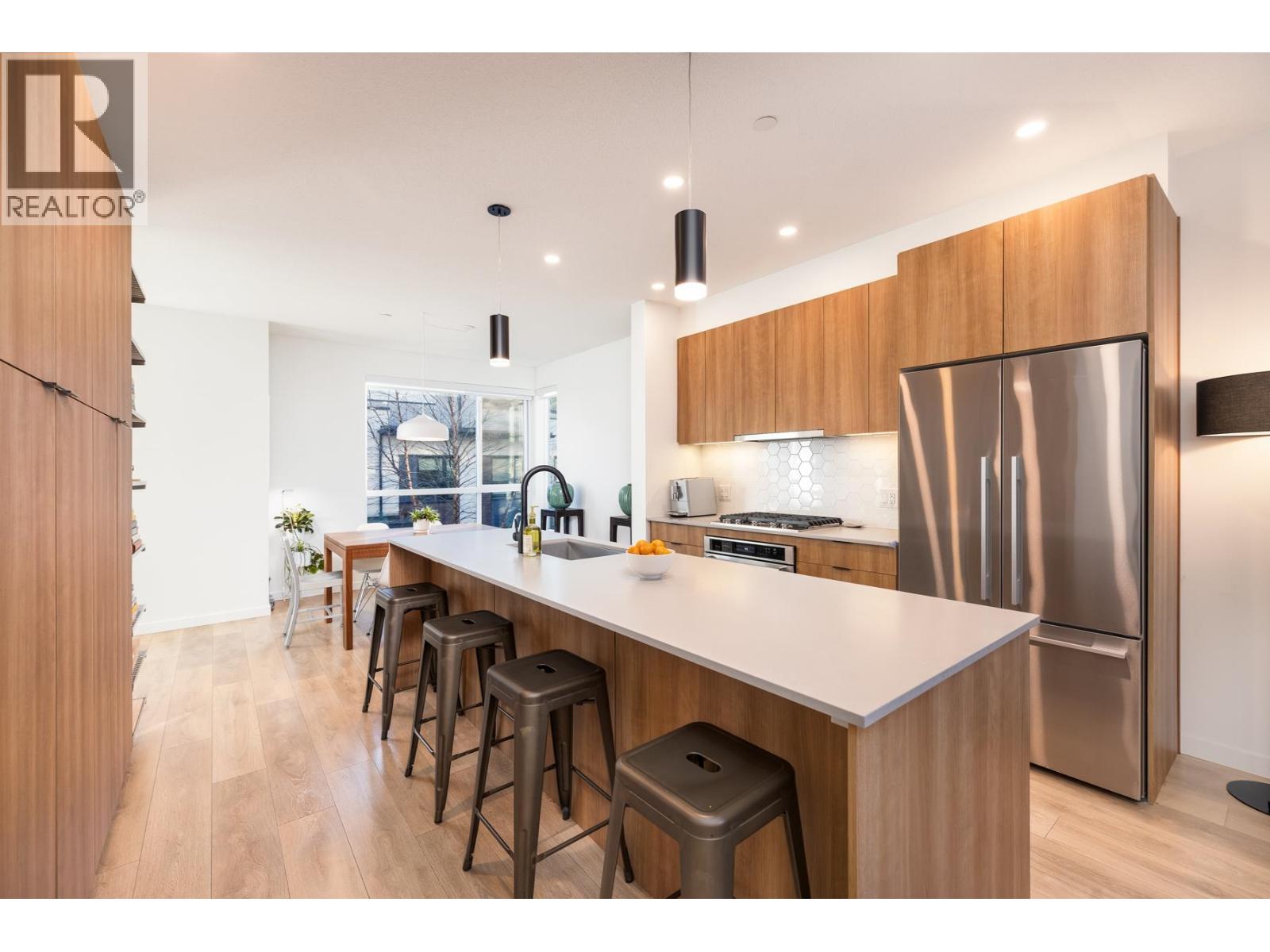 Welcome to Founders Block, a LEED Gold community by reputable developer Anthem Properties in the highly desirable Moodyville neighbourhood of North Vancouver. Arguably the nicest townhome in the complex, this exceptional south-west facing corner residence is flooded with natural light and positioned on the quiet side, offering panoramic city, water, and mountain views. This mint-condition 4-bedroom, 3-bath home features an open-concept layout with high ceilings, a stone island kitchen with gas range, radiant in-floor heating, office nook, upper laundry, oversized storage, a spa-like primary suite with walk-in closet and view deck, two secure parking stalls, and steps to Lower Lonsdale, the SeaBus, Moodyville Park, and The Shipyards. (32481456)
