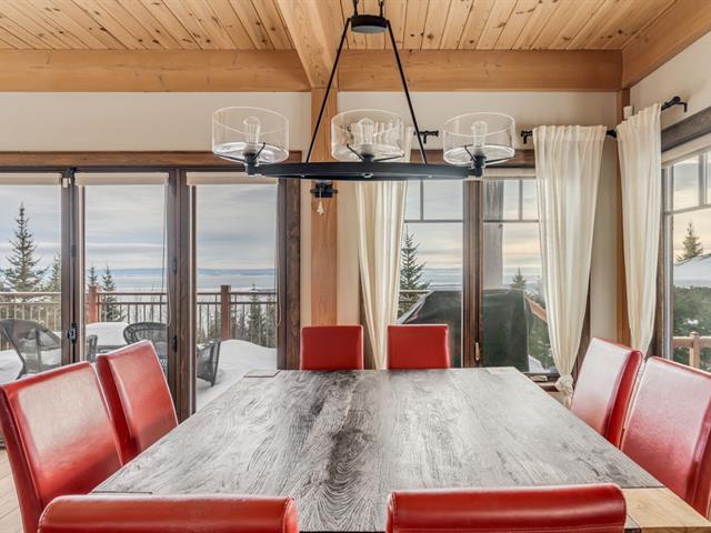 SPECTACULAIRE propriété perchée dans le prestigieux projet La Seigneurie des Éboulements! Vue panoramique sur le fleuve, l'Isle-aux-Coudres et le Massif. Construction 2009 de grande qualité avec matériaux nobles, poutres BCFIR et plafond cathédrale. Aires ouvertes lumineuses, immense suite des maîtres avec salle de bains attenante et balcon. Terrain boisé de 44 397 pieds carrés. Location touristique autorisée. Un panorama à couper le souffle! (41186890)