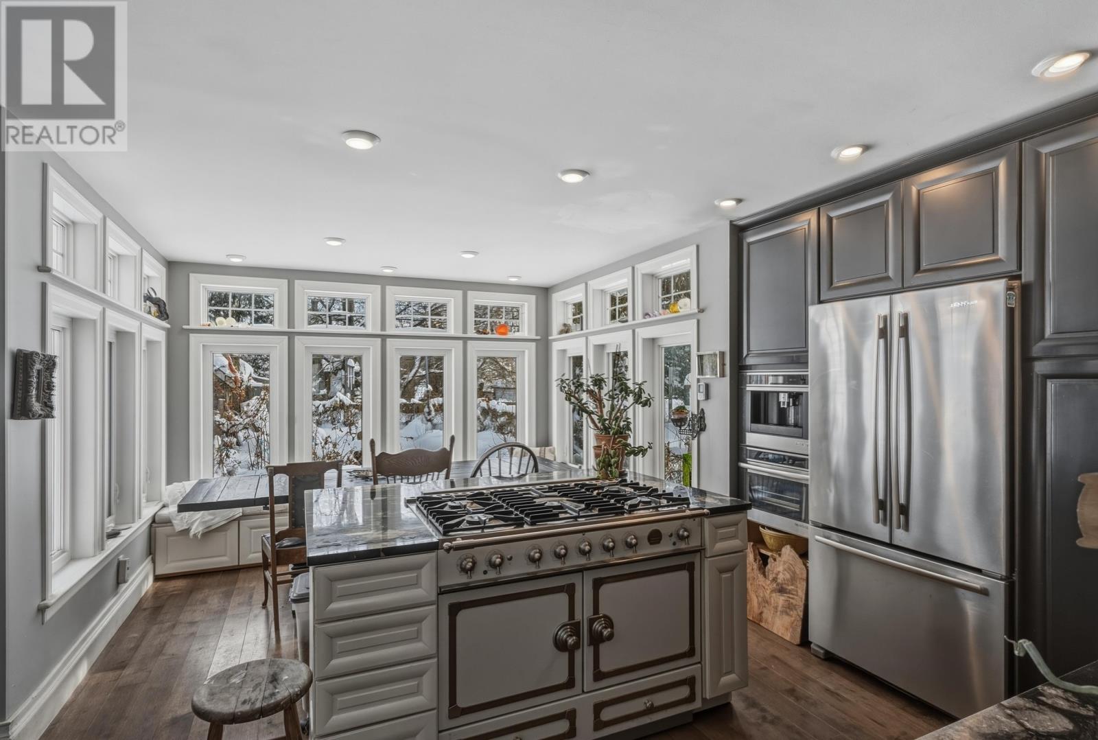 Step into a two bedroom, two bathroom home that feels curated, collected, and completely unforgettable. Rich engineered hardwood floors, antique accents, and thoughtful architectural details create a warm, inviting atmosphere throughout. The cozy living room features a classic white brick fireplace and vintage-inspired finishes, the perfect space to unwind with a book or gather with friends. Natural light pours into the stunning dining room, complete with skylights and elegant French doors, offering a bright and tranquil retreat year-round. The heart of the home is the beautifully designed kitchen showcasing high-end appliances, a professional grade gas range, custom cabinetry, built in espresso machine, hidden dishwasher, stone countertops, and a statement island built for entertaining. A wall of windows surrounds the dining area, creating a bright, airy space that feels connected to the outdoors. If you’ve been searching for something with soul, style, and substance, this is it. (31989638)