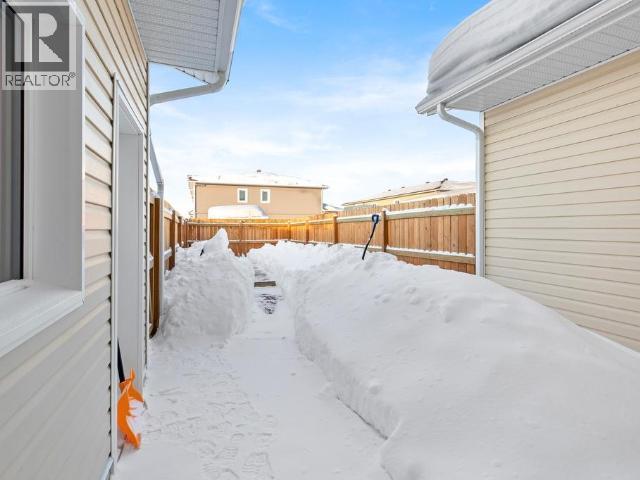 End Unit Townhouse with attached single garage. Centrally located in Whistlebend and the best part is NO CONDO FEES! Offering three bedrooms, 2.5 baths and spread over 2100 sq ft of well lit, nicely finished living space. Main level features bright living area, dining area, powder room and an attractive oak kitchen with island and tile accents. Upstairs are three nice sized bedrooms - this primary includes walk-in closet and ensuite. Family room on upper level with another full bath makes it a great family home. Featuring central vac, fenced in private back patio area, plenty of potential storage in accessible crawlspace, and concrete drive with room for 'toy parking". (29406581)