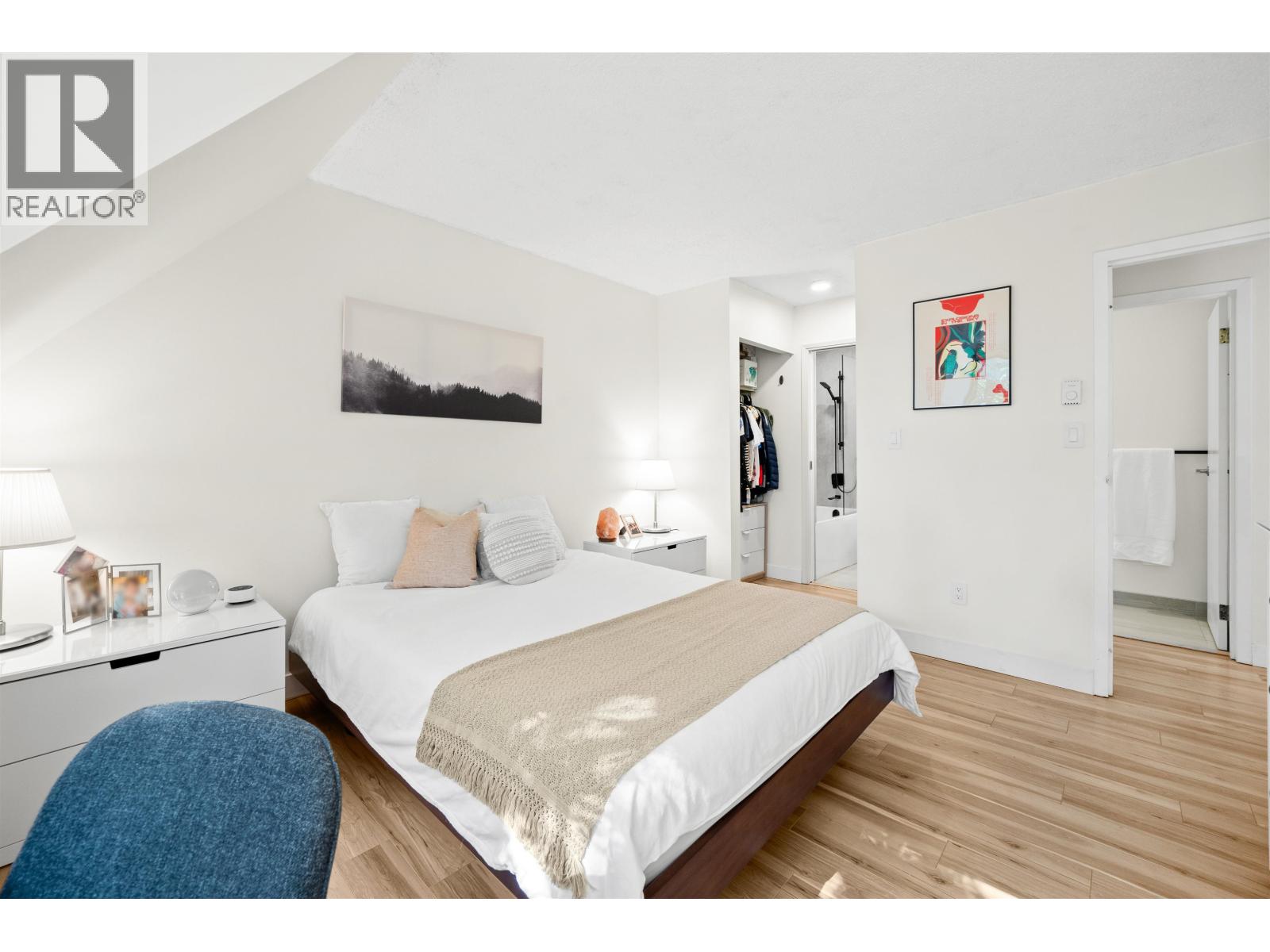 CREEKSIDE LIVING IN THE HEART OF LYNN VALLEY! This spacious 2 bedroom, 1.5 bathroom townhome offers 1,096 square feet of bright, south-facing living in a peaceful, private setting. Overlooking lush greenery and a tranquil creek, the home is filled with natural light throughout. The main level features laminate flooring, a cozy gas fireplace, open living and dining areas, a convenient powder room, and seamless access to a large private patio - perfect for morning coffee or evening entertaining. The kitchen is finished with stainless steel appliances, granite countertops, and ample storage. Upstairs, two generously sized bedrooms are complemented by a beautifully updated bathroom with a deep soaker tub, frameless glass shower, tiled niche, and adjustable shower head. Located in the well-run Lynn Valley Terrace strata, just steps to Lynn Valley Centre, parks, trails, restaurants, and top schools. (32481939)
