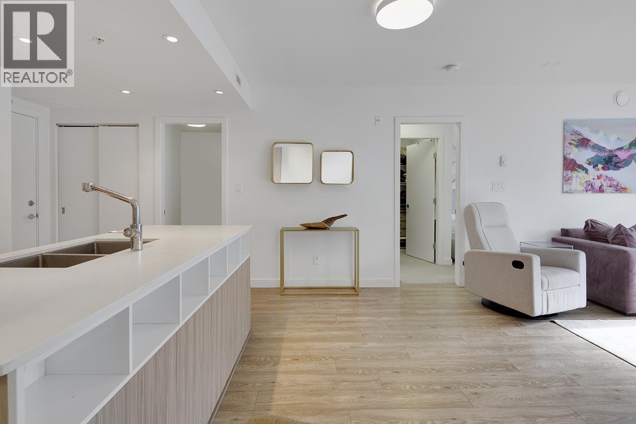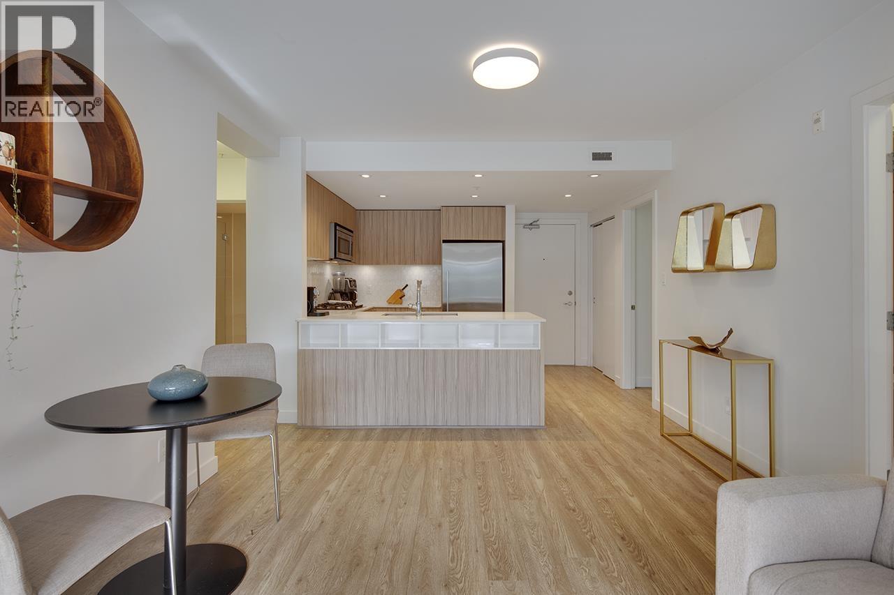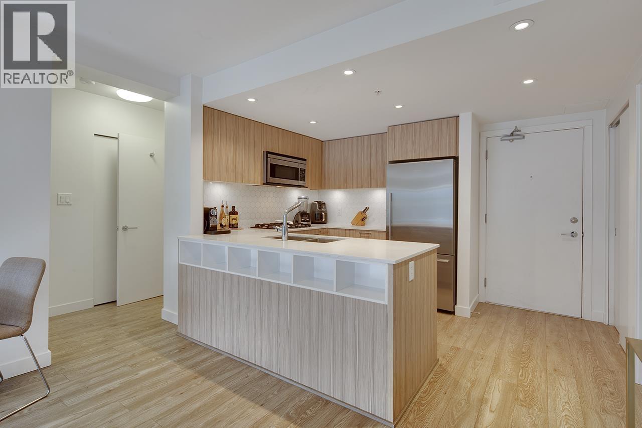Step into this exceptional south facing 3-bedroom, 2-bathroom with XL 421sf south-facing patio! 3rd bedroom is a den and can be used as bedroom. The open-concept design seamlessly connects the kitchen, living and dining areas that are flooded with natural light from floor-to-ceiling windows. The gourmet kitchen features quartz countertops, inviting island bar, and top-of-the-line Fisher Paykel appliances. Outside, the sprawling sun soaked deck offers plenty of space for dining and relaxing. Located in a vibrant neighbourhood, just steps away from shops, transit, cafes, and scenic trails. In-suite laundry and 1 parking space, this pet-friendly home offers an unparalleled opportunity for luxurious urban living. OPEN HOUSE Sat Feb 28 2-4pm (32481953)
