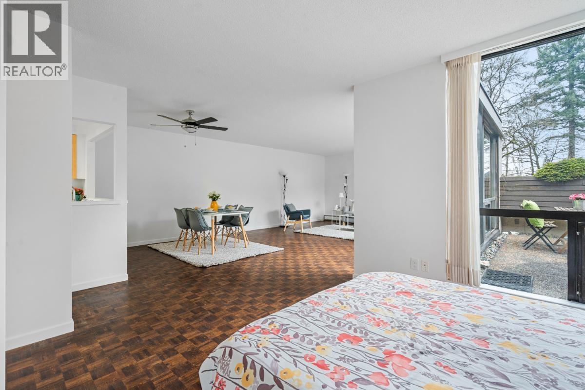 Ground-level 2-bed/2-bath, home with serene water & Duck Island views, oversized private patio, & incredible renovation potential. Ready for your design ideas. Spacious primary bedroom with large walk-in closet. TWO secured parking stalls (#115/#116) + oversized storage locker(#62). Secure gatehouse entry, outdoor pool & summer social area for residents. Nestled beside VanDusen Gardens with mature trees, fresh air, & peaceful surroundings-truly feels like living in a park. Ideal for end-users or investors seeking a quiet, nature-filled setting close to amenities. Note: 2nd-bed requires framed door. More photos online and join us at our Live Stream broadcast on our FB page: Thu Feb 26th (5pm), private showings by appt only Fri,Sat,Sun Feb 27-Mar 1st (11am-1pm). Offers presented as received. (32481958)