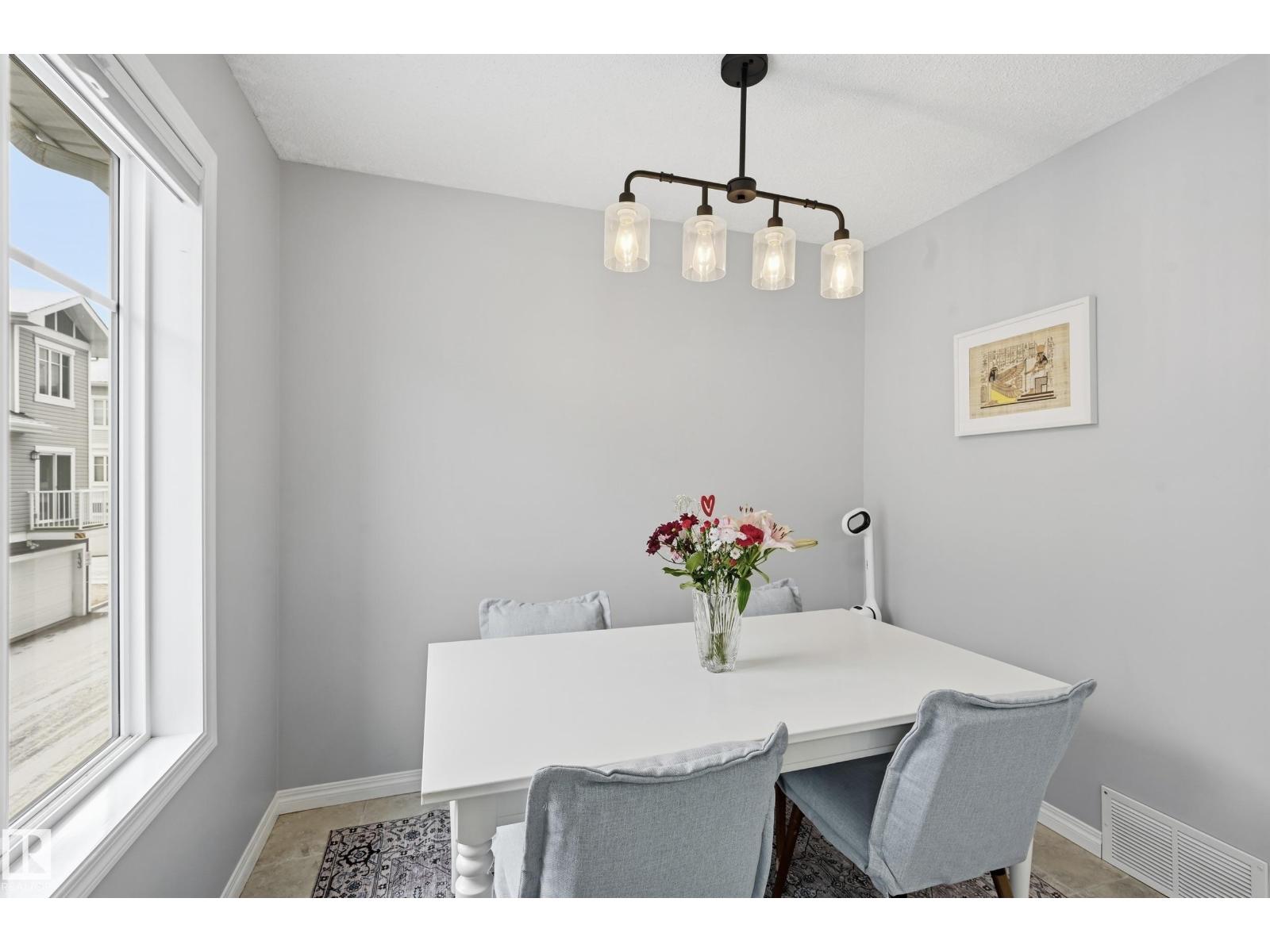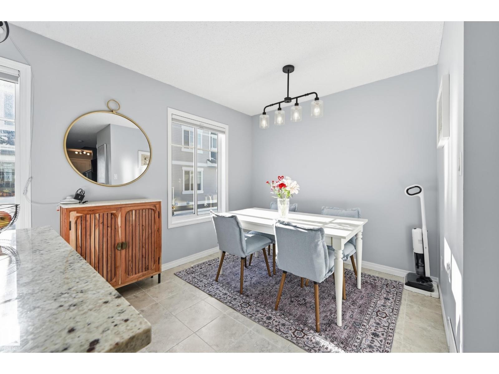 LOW CONDO FEE & DOUBLE ATTACHED GARAGE! Nestled in desirable Chappelle Gardens, this beautiful 3 bedroom and 2.5 bathroom townhome is in SHOWHOME CONDITION offering both style and convenience. Open concept main floor welcomes you with 9ft ceiling and large windows throughout. You will enjoy the spacious living area that flows effortlessly into the beautifully designed kitchen complete with NEW light fixtures, NEWER stainless steel appliances & ample counter space. Spacious dining area, FULLY REMODELLED half bath & large patio complete the main floor. Retreat to the upper level where the primary bedroom offers a private 3 piece ensuite with large closet, two additional bedrooms & 4 piece bathroom. Enjoy your laundry on the 2nd level with garage access, and additional storage. PET FRIENDLY complex with easy access to a wealth of amenities, including parks, ponds, rec centre, shopping, restaurants, & schools. Minutes off the Henday & close to Edmonton International airport. Shows 10/10! (33864151)