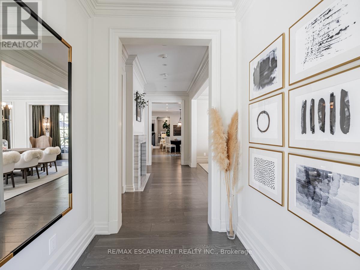 Nestled within one of Oakville's esteemed neighborhoods, this exceptional residence epitomizes luxury living. Boasting proximity to the lake, renowned schools, tennis courts, parks, and various amenities, this property offers a blend of convenience and exclusivity. Upon entering, guests are welcomed by an exquisite interior spanning over 5,000 square feet of above-grade living space. The detached home showcases a distinctive architectural design and impeccable artisanship, radiating elegance. Crafted to emulate a lavish retreat, the residence features an array of amenities including an in-ground pool, hot tub, backyard putting green, a meticulously landscaped outdoor area complete with a bathroom and shower. Inside this dream showhome offers ample space for entertaining. In the kitchen, grey-blue cabinets with black uppers pair beautifully with a sleek quartz countertop and backsplash for a modern industrial look. A two-storey hallway connects the kitchen to the rest of the main floor and offers drama of its own with rich velvet drapes and a series of French doors. Enjoy this one of a kind basement including a bowling alley, a gym room, open-concept media room and a 5th guest bedroom. Luxury Certified. (42202420)