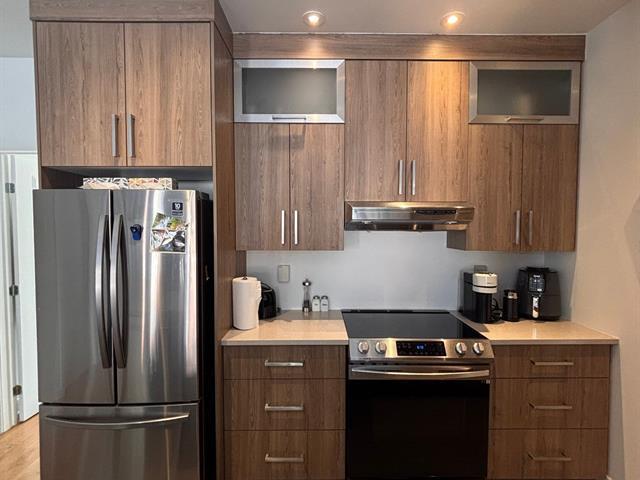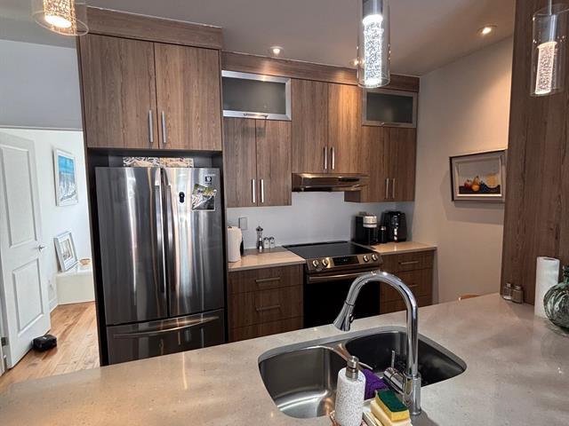 Elegant waterfront condo for rent in Pointe-aux-Trembles, next to the St. Lawrence River, at only $2,200/month. Available May 1st or June 1st, 2026. Bright open-concept layout with large windows and beautiful water views. Includes storage, bed frame, night table, dresser, light fixtures, sofa, 5 appliances (fridge, stove/oven, dishwasher, washer, dryer) and 3 white island chairs. Indoor heated parking + storage space. Rooftop terrace with stunning views. All inclusions are lent as is, without legal warranty of quality. (49303684)