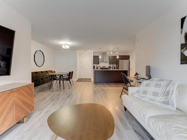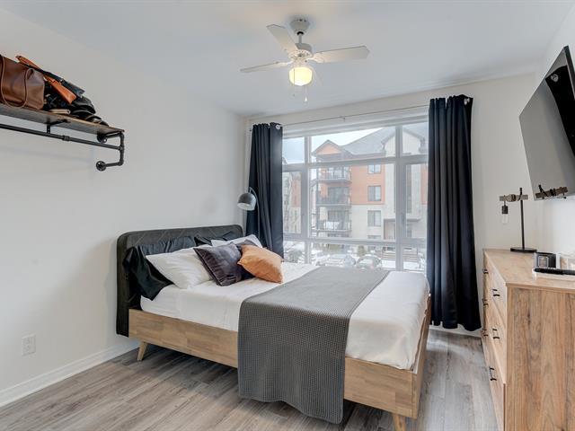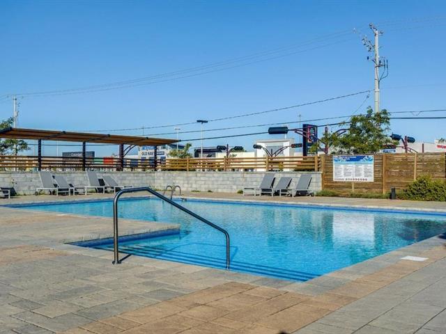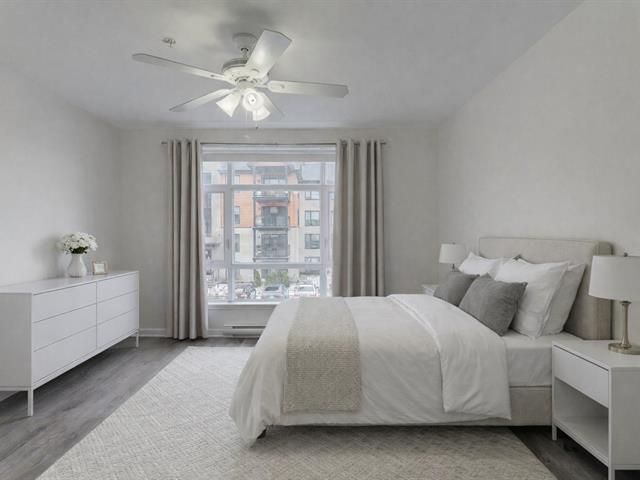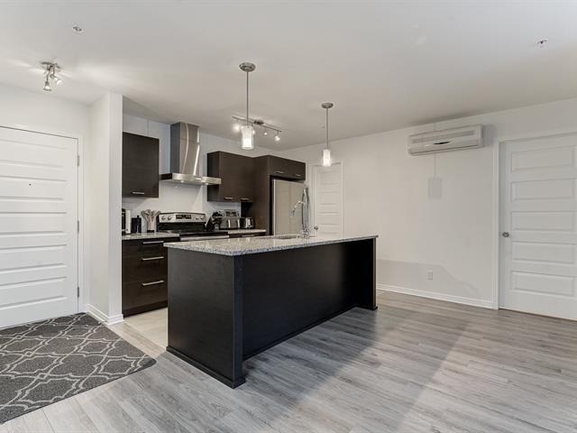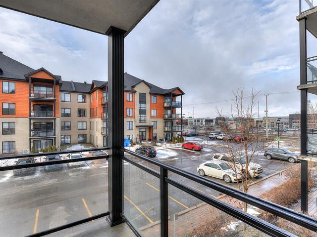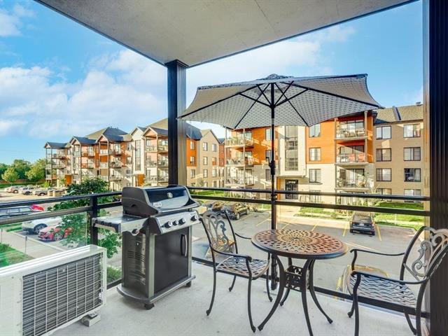 Turnkey condo at Onze de la Gare offering over 1,000 sq. ft. on the 2nd floor with abundant natural light. Features 2 bedrooms, 2 full bathrooms, a modern kitchen with granite countertops, open-concept living space, and a private balcony. Includes wall-mounted air conditioning, all kitchen appliances, washer and dryer, elevator access, 2 indoor tandem garage spaces, and a locker. Enjoy amenities such as a heated outdoor pool, gym, terrace with fireplace, kids' park, and urban chalet. Prime location minutes from the future Vaudreuil Hospital, shopping outlets, schools, daycares, groceries and highways. (49547060)