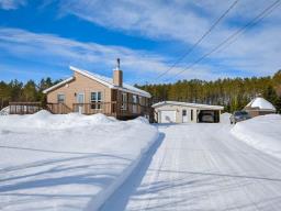 IMPECCABLE 1.12-ACRE PROPERTY with access to LAC DES ILES (boat launch, walk-in or canoe). Recent windows, exceptional natural light. Cathedral-style kitchen and dining area. 2 bedrooms and full bathroom upstairs. 2025 heat pump. Large family room, laundry room with office/bedroom in the basement. Ceramic room for slow-combustion wood stove. Plenty of storage. Beautiful patio. Very nice insulated garage + carport, gazebo and several sheds on a magnificent landscaped lot with no rear neighbors, located on a cul-de-sac; peace and privacy assured. Septic system for 3 bedrooms. Excellent drinking water. A true gem! Info: 819-983-8607. (56576455)
