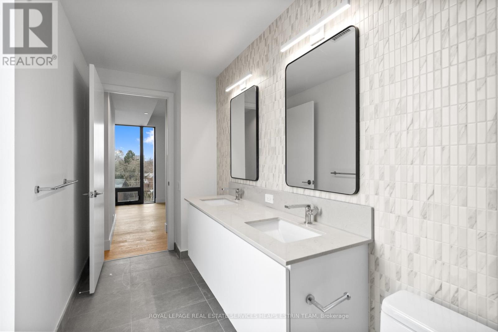 Welcome to Suite 409 at 1414 Bayview Avenue A Thoughtful Expression of Boutique Living in Leaside. This beautifully appointed two-bedroom, two-bathroom suite is nestled on the fourth floor of one of Leaside's most admired boutique buildings. With east-facing exposures perched just above the treetops, Suite 409 offers a tranquil perspective and an exceptional level of privacy. Step inside to discover a carefully considered layout where form meets function. The spacious entryway includes a generous coat closet and leads into an open-concept living and dining area with premium engineered hardwood floors, tall ceilings, and abundant natural light. The space is anchored by a custom-designed Italian kitchen with integrated millwork, Caesarstone countertops, and a full suite of built-in Miele appliances bringing elegance and ease to everyday moments. The split-bedroom layout offers ideal separation. The primary suite features a peaceful bedroom with hardwood flooring and lush views, a custom-designed walk-in closet, and a spa-inspired three-piece ensuite. Finished with Caesarstone surfaces, a mosaic tile feature wall, and a rainfall shower, the ensuite blends modernity with comfort. The second bedroom offers east-facing views, a large closet, and easy access to a four-piece family bath finished with floating vanity and matching mosaic tilework. With refined finishes throughout and a layout designed for real life, Suite 409 is an exceptional opportunity in one of Torontos most established and beloved neighbourhoods. (42203690)