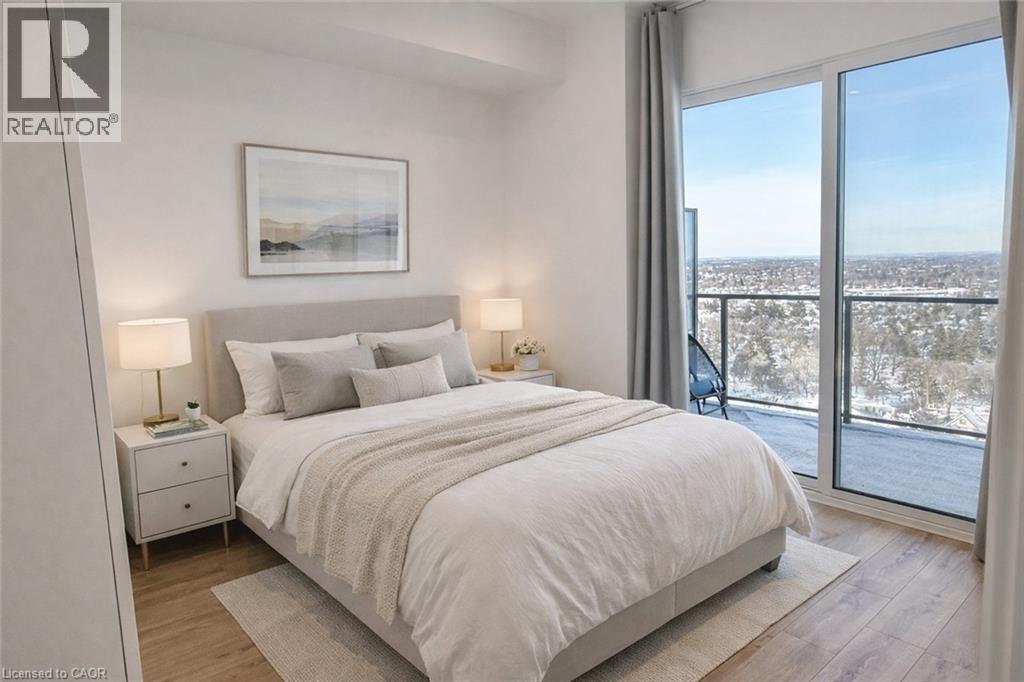 ONE BEDROOM CONDO FOR LEASE WITH RARE OVERSIZED BALCONY + UNDERGROUND PARKING. Welcome to 1602 - 741 King St W, a stylish, move-in-ready one-bedroom suite offering 581 sq ft of efficiently designed interior space plus a rare 192 sq ft private balcony. This unit provides a unique blend of comfortable indoor living and generous outdoor space in a central urban setting. The bright open concept layout features large windows flooding the space with tons of natural light, modern finishes, a functional kitchen, and an oversized ensuite laundry room, with underground parking included for added convenience. The monthly rent includes underground parking, heat and high-speed internet. Located steps from the ION LRT, Google, Grand River Hospital, cafés, restaurants, shopping, and Victoria Park, this home offers exceptional walkability and connectivity. Ideal for busy professionals seeking a connected, low-maintenance lifestyle in a prime central location within one of Kitchener's most vibrant neighbourhoods. Immediate occupancy available. (70197657)