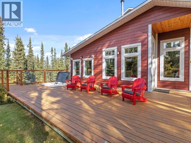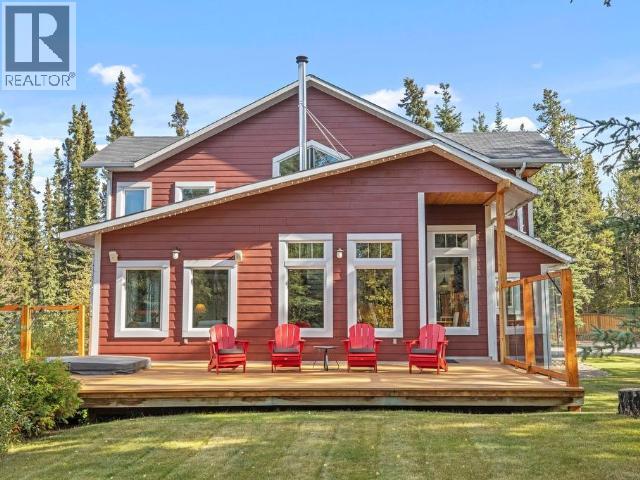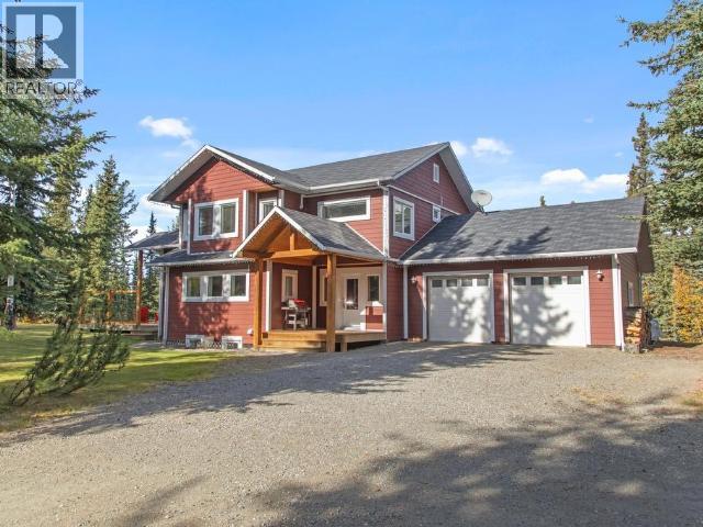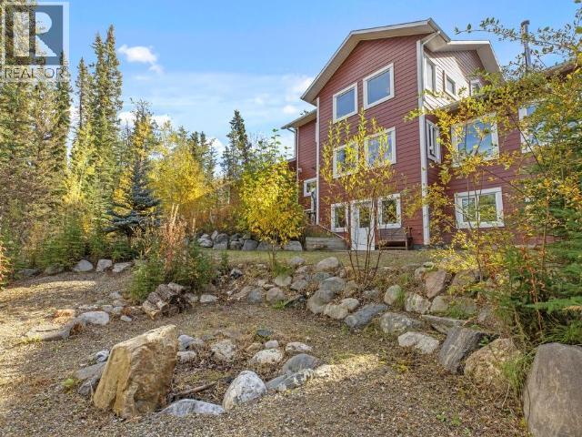 Impressive Executive Country home just 15 minutes from Whitehorse! Custom-built two-storey home with walk out basement and attached 35x27 garage. Sits on 2.5 private acres with hiking & biking trails right out the back door. Open-concept main features a grand slate-tiled foyer, formal dining area, and bright living room with feature wood stove. The kitchen shines with concrete counters, pantry, stovetop, and wall oven. A stunning post-and-beam staircase and expansive windows fill the home with light. Step onto the large deck with hot tub for ultimate privacy and relaxation. Upstairs offers 3 spacious bedrooms, full bath with double vanity, including primary suite with walk-in closet, 3/4 ensuite with heated tile, plus convenient upper laundry. Basement includes a rec room, workout area, fourth bedroom, and 3/4 bath complete this exceptional property. (29407854)