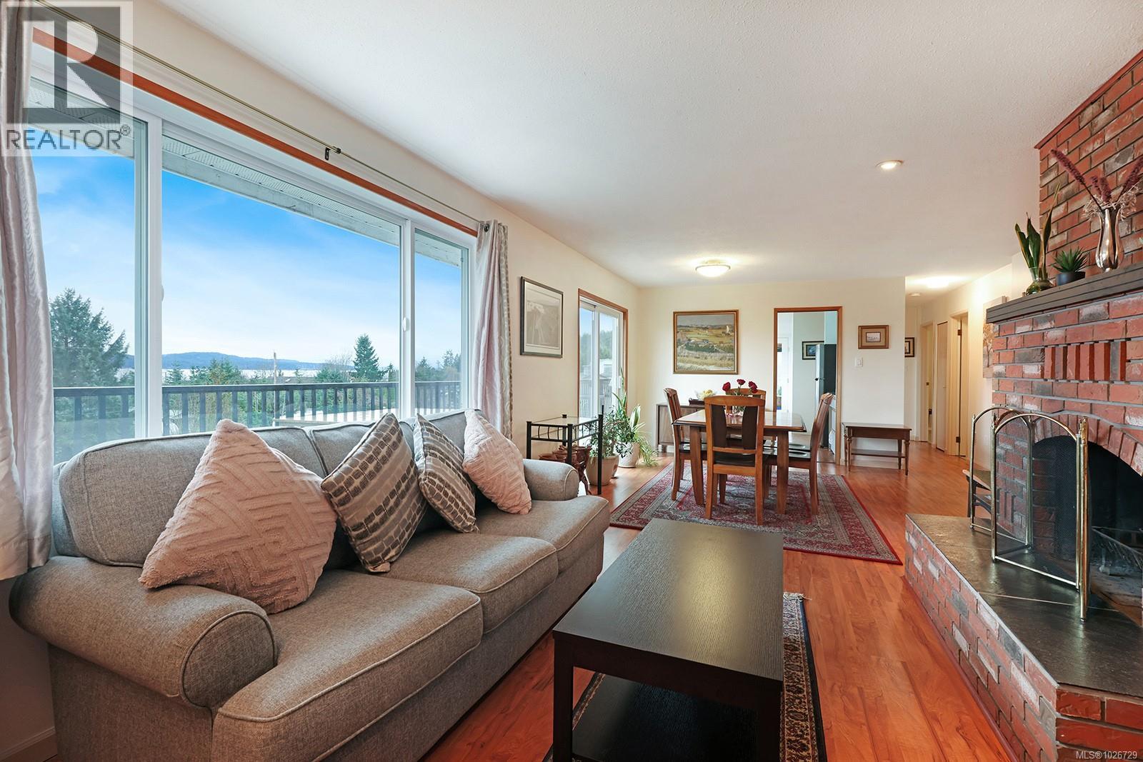 Enjoy the stunning ocean & mountain views of Baynes Sound while perched up on a large .82A LOT. Conveniently located in Union Bay, this home offers both privacy & accessibility to the amenities offered by this seaside village. The circular driveway leads you up to the portico linking the house to a huge 750 sq ft (24'2''X29'2'') detached garage/man cave with a new WETT certified pellet stove. Main level entry offers fabulous views along with 3bed/2bath. The living room has a wood burning fireplace with a custom brick surround. The bright walk-out basement level offers view, lg family room, summer kitchen, 1 bed/ 1 bath, lots if storage PLUS new WETT certified wood stove that heats the whole house. Brand new windows, doors, appliances & bedroom flooring. Recent updates also include septic, perimeter drains & gutter. Glassed in sunroom/mudroom keeps it all nice & bright. Lots of outside storage too. This house has it all and is waiting for it's new family. Come check it out, you won't be disappointed. (30417524)